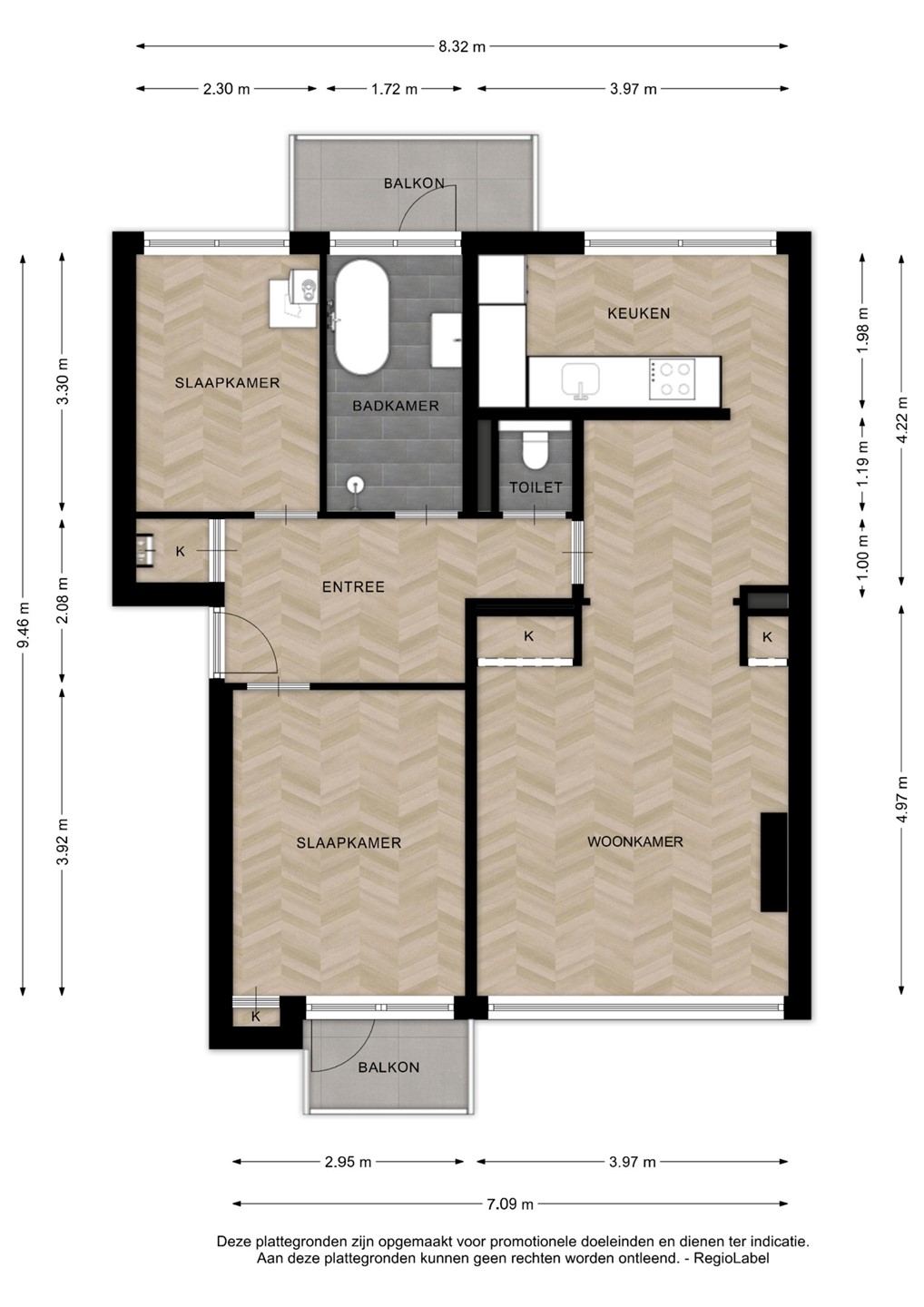 | Aantal kamers | 3 (waarvan 2 slaapkamers) |