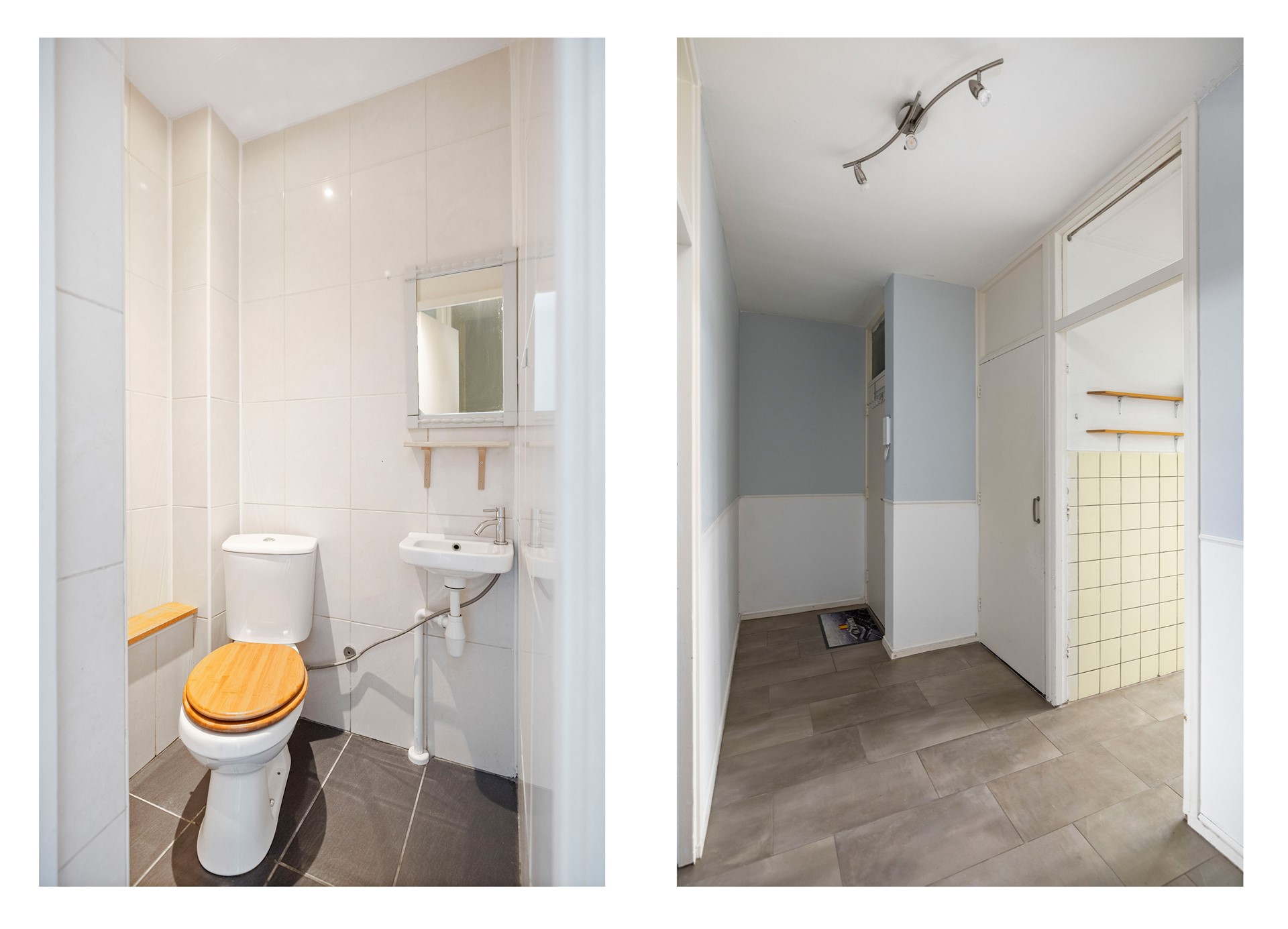 Je komt binnen in een hal waar je een handige berging met meterkast vindt. Ook heb je vanuit de hal toegang tot het toilet, de keuken, de woonkamer en de slaapkamer aan de voorkant van het appartement. Bij mooi weer zet je in deze slaapkamer ’s ochtends direct lekker de deur naar het balkon open.