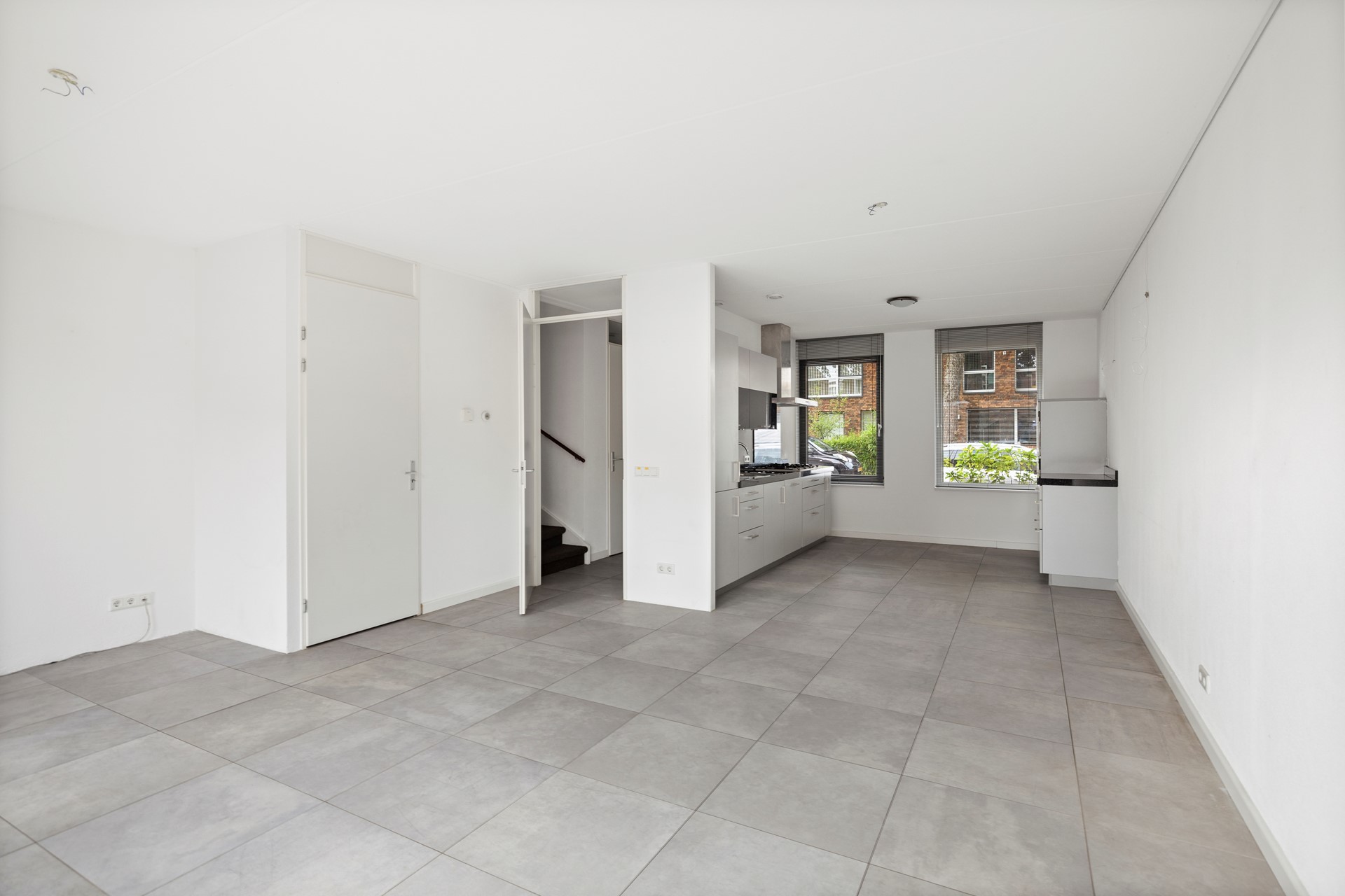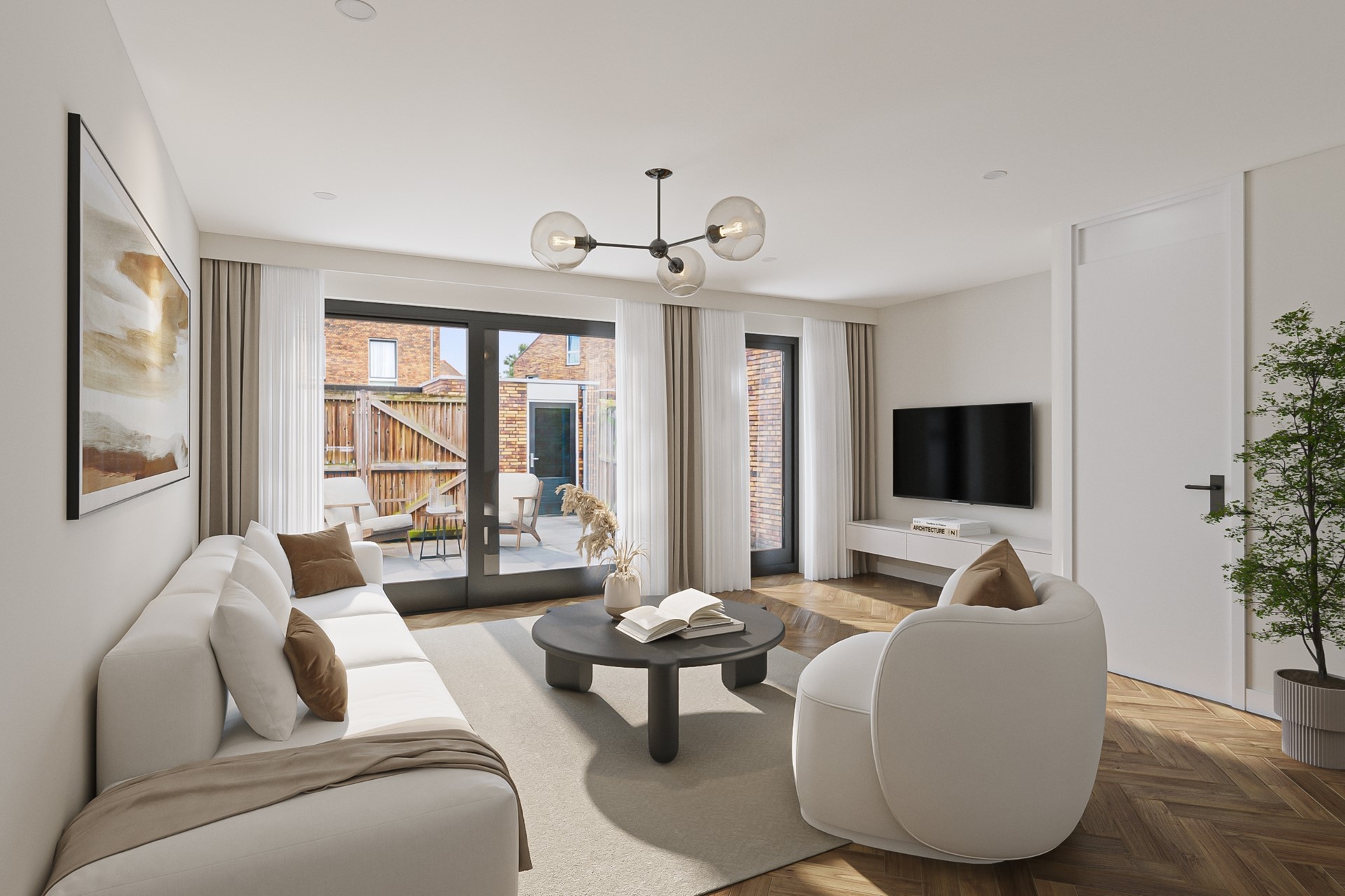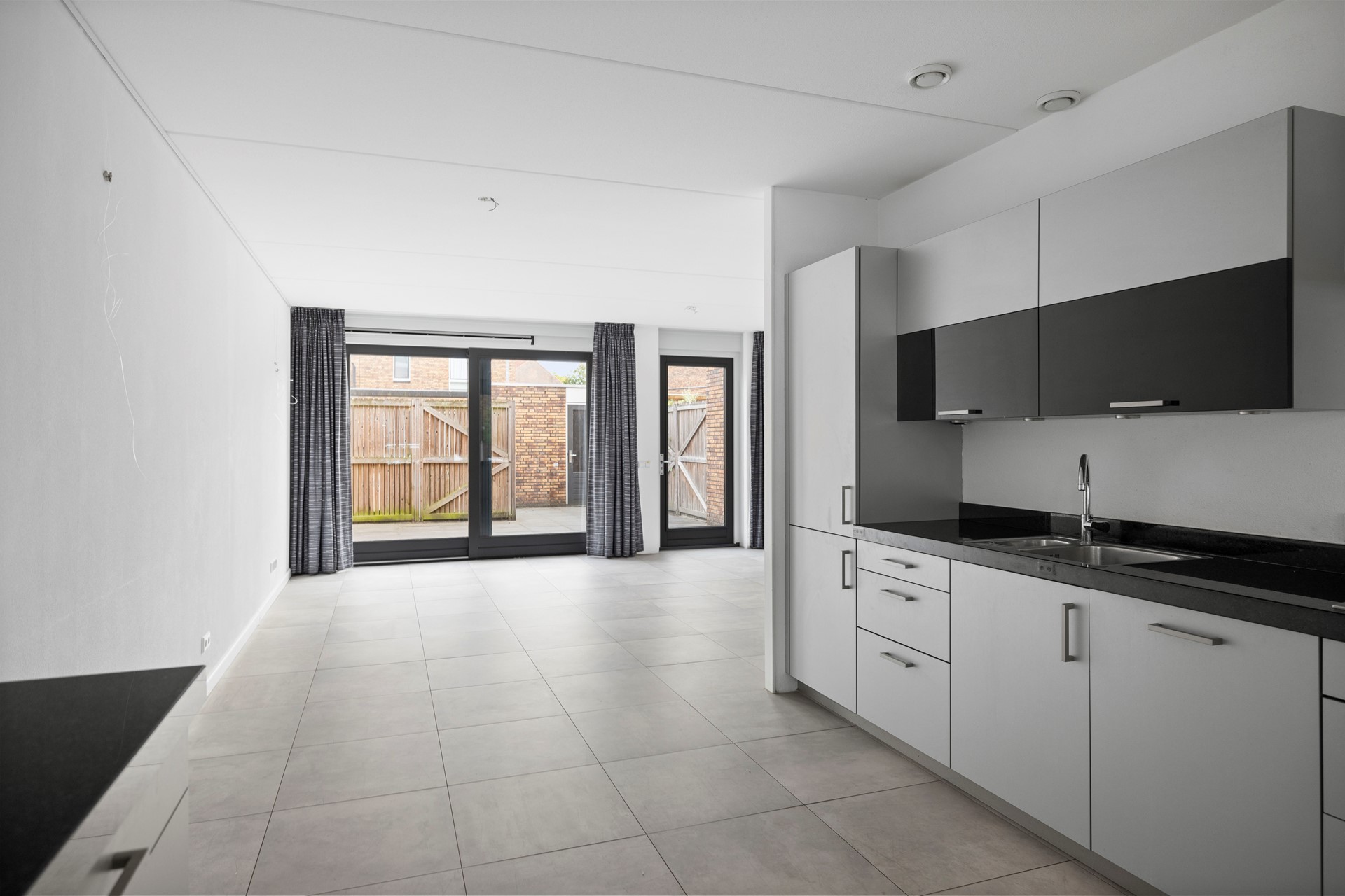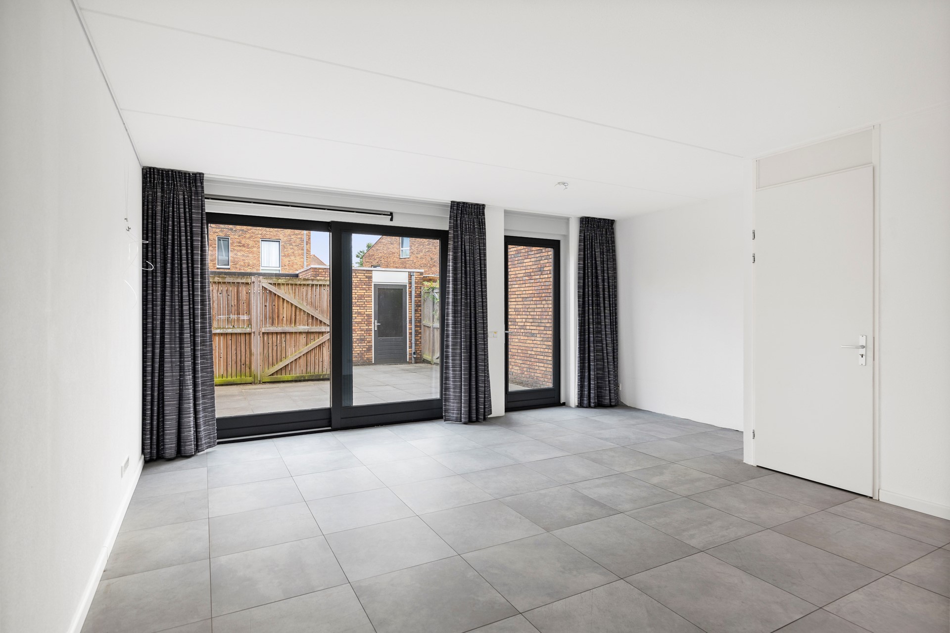 De lichte woonkamer is tuingericht en heeft een enkele deur en schuifpui naar de tuin, waardoor je ’s zomers de tuin goed bij de woning kunt betrekken. Ramen over de hele breedte zorgen ervoor dat er veel daglicht naar binnenvalt. In de woonkamer is een handige trapkast voor extra opbergruimte.