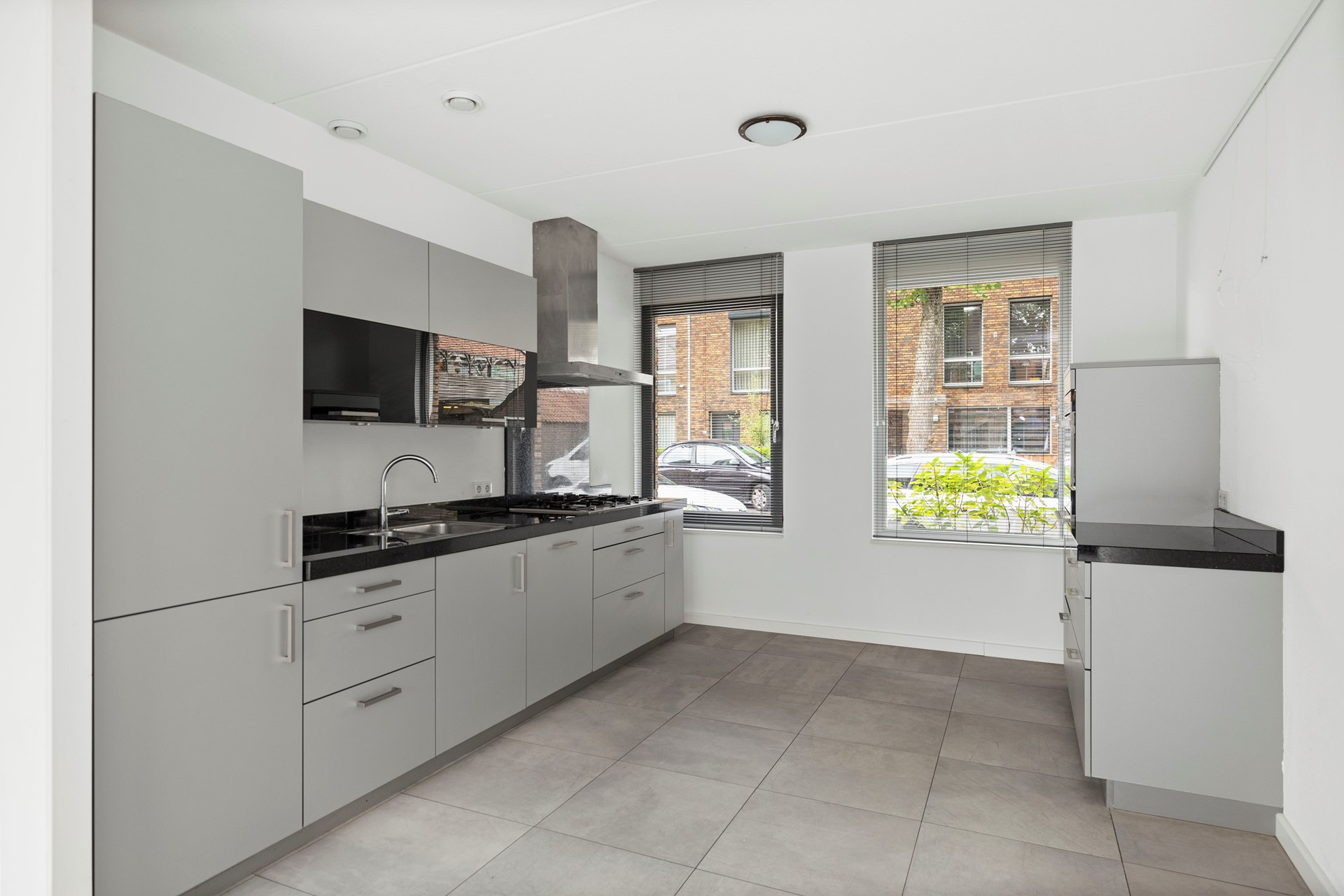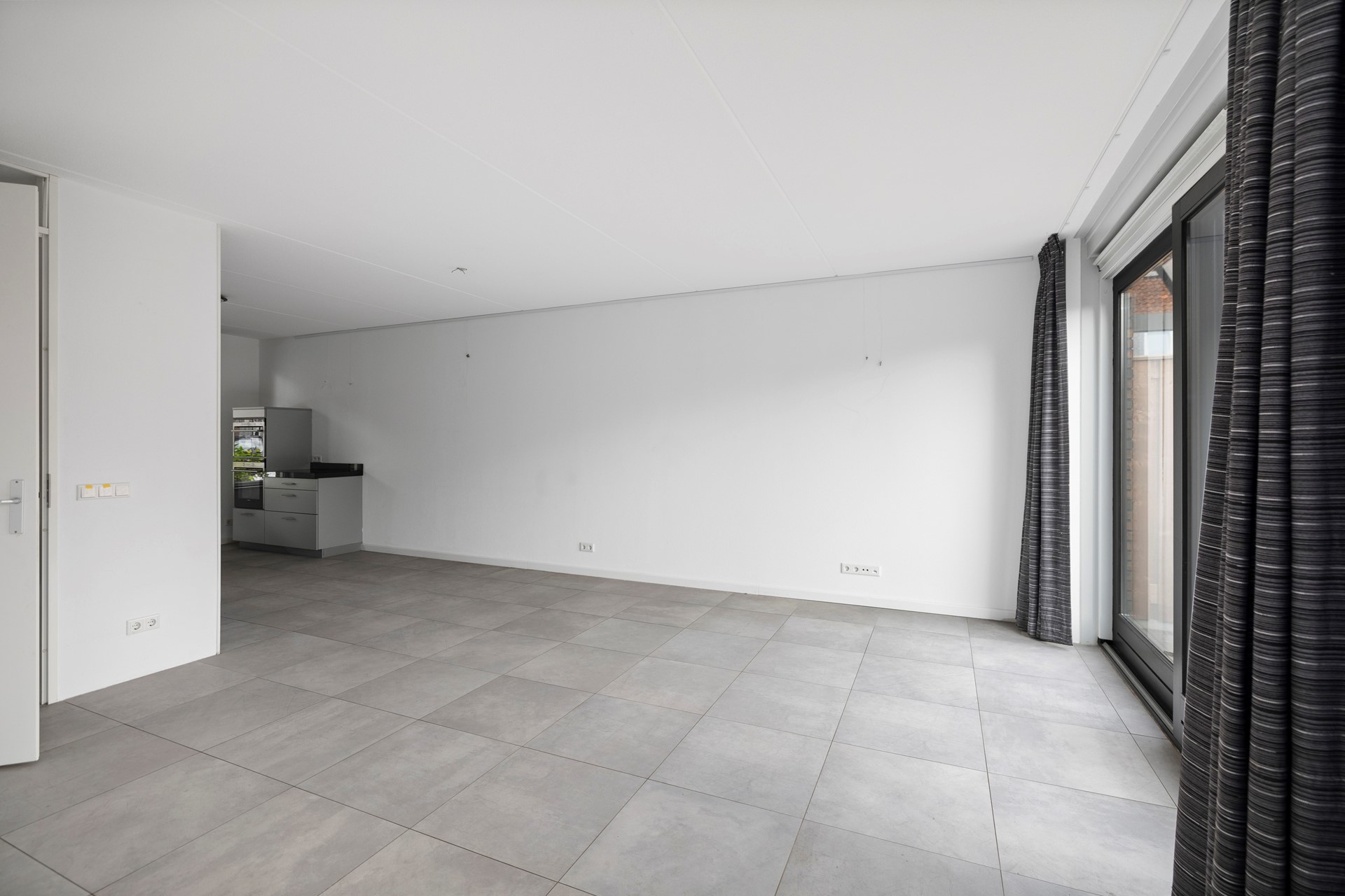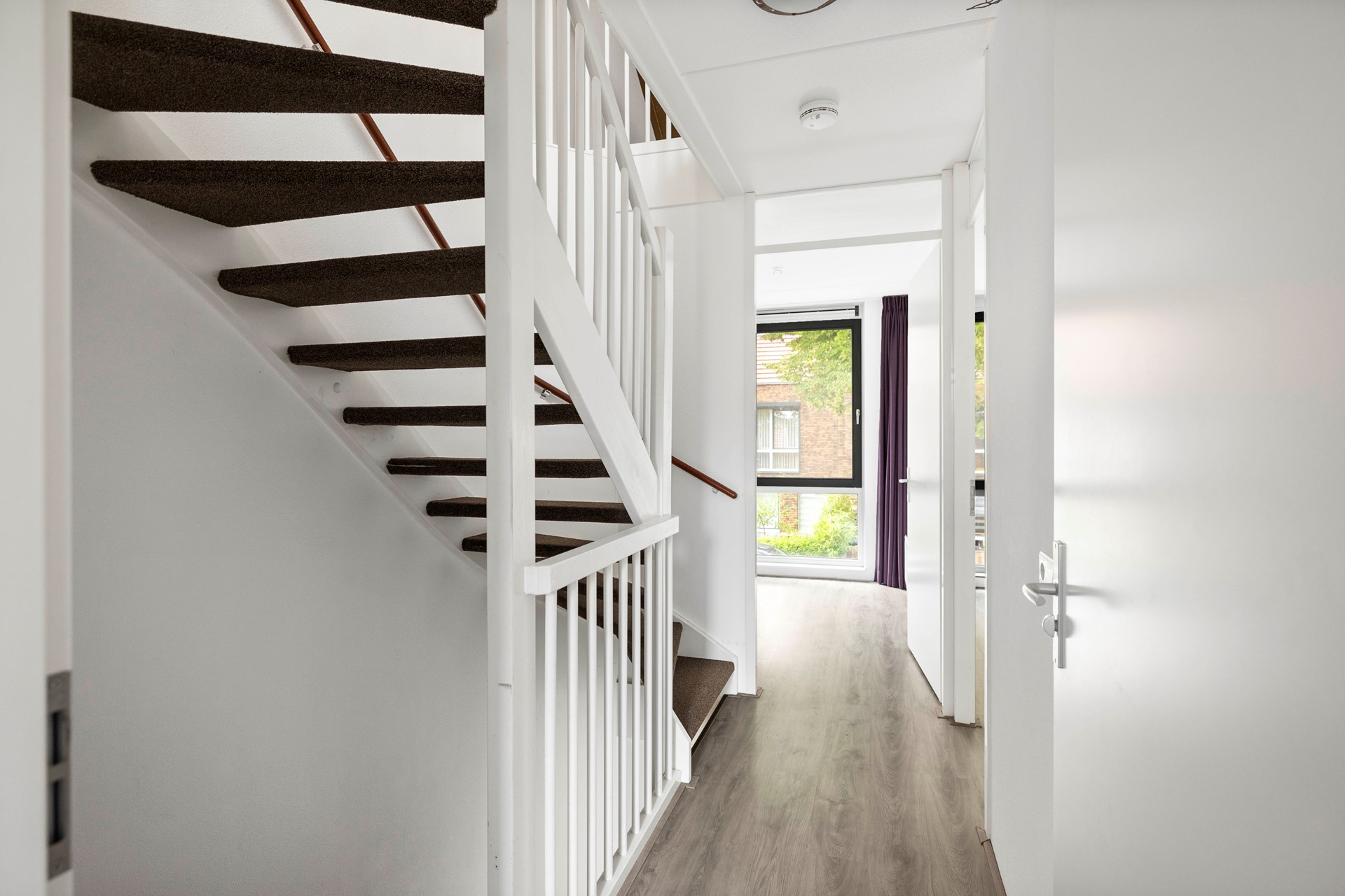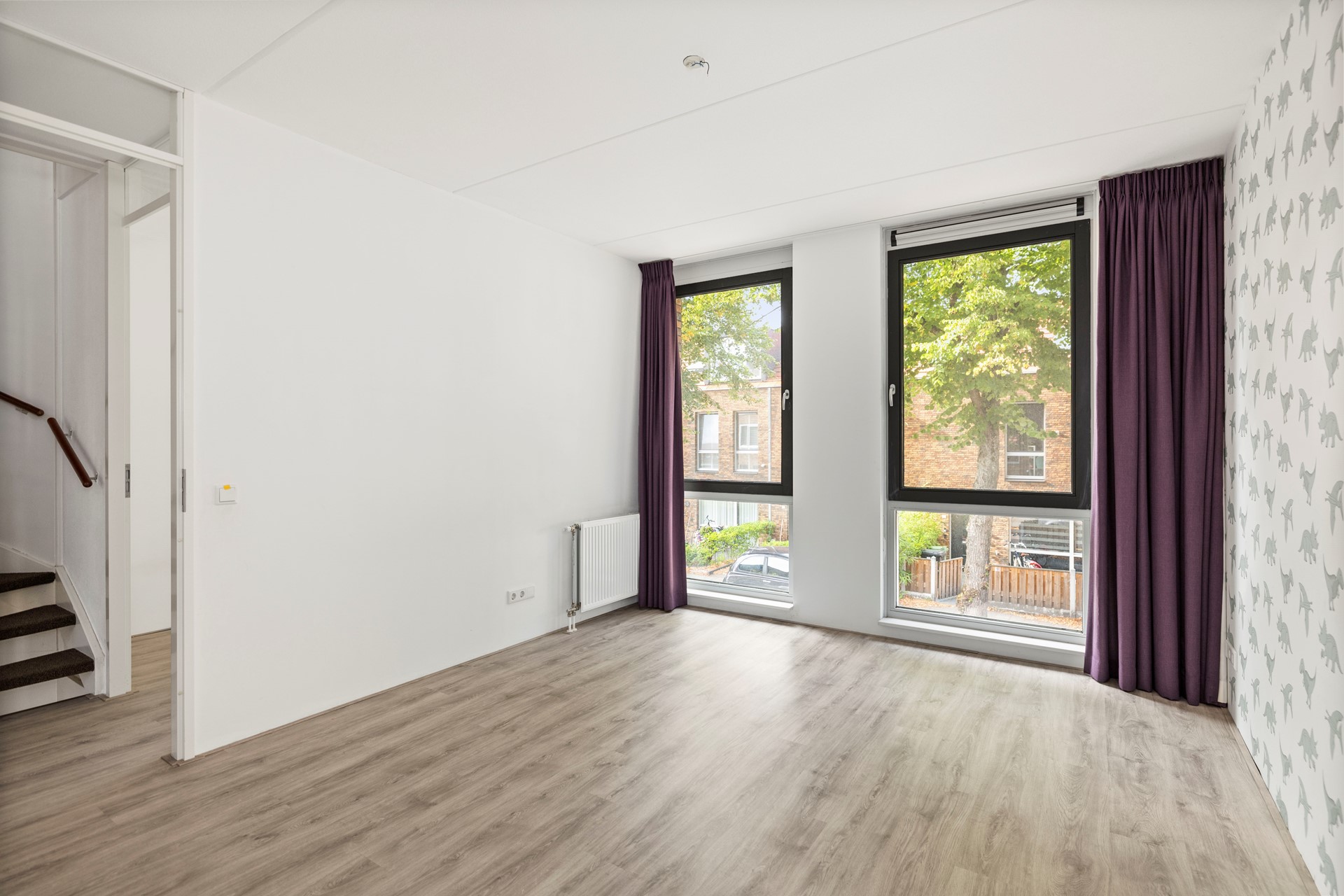 De lichte woonkamer is tuingericht en heeft een enkele deur en schuifpui naar de tuin, waardoor je ’s zomers de tuin goed bij de woning kunt betrekken. Ramen over de hele breedte zorgen ervoor dat er veel daglicht naar binnenvalt. In de woonkamer is een handige trapkast voor extra opbergruimte.