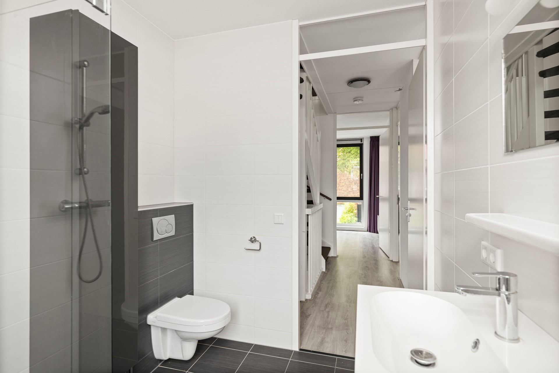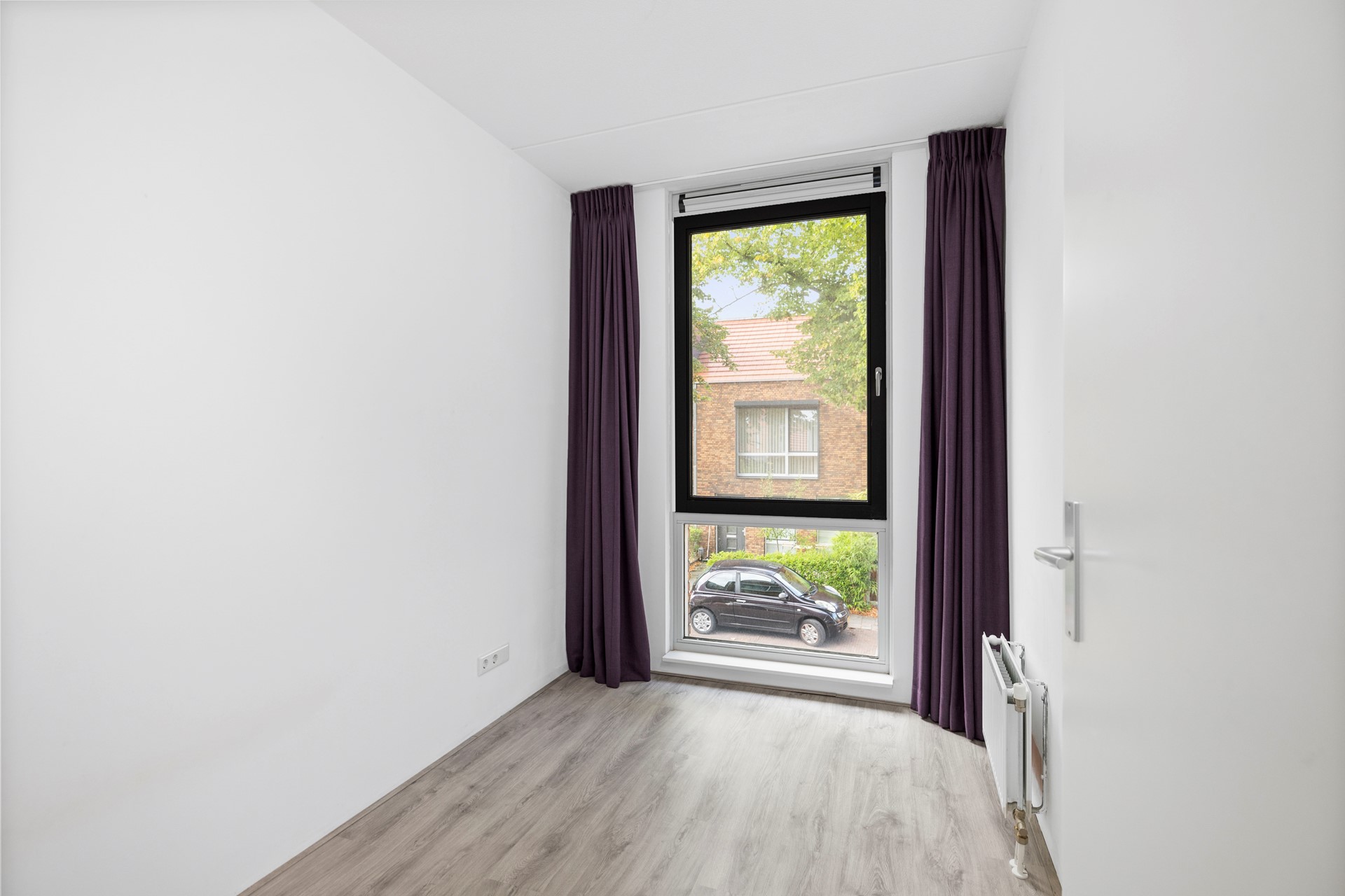 De overloop geeft toegang tot drie fijne slaapkamers, waaronder een riante masterbedroom aan de voorzijde van de woning. Alle kamers zijn voorzien van grote ramen tot aan de vloer, waardoor ze heerlijk licht zijn. De moderne badkamer beschikt over een wastafelmeubel, inloopdouche en tweede toilet.