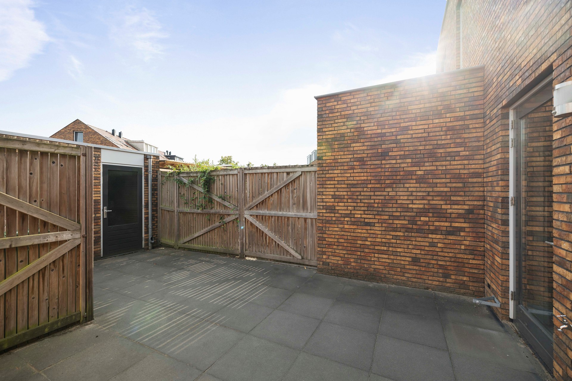 De betegelde achtertuin ligt op het zuidoosten en biedt genoeg ruimte aan een tuinset of heerlijke loungeplek. Word hier rustig wakker met een ontbijtje in de ochtendzon, of nodig de nieuwe buren uit voor een gezellige borrel. Achter in de tuin staat een berging voor de fietsen.