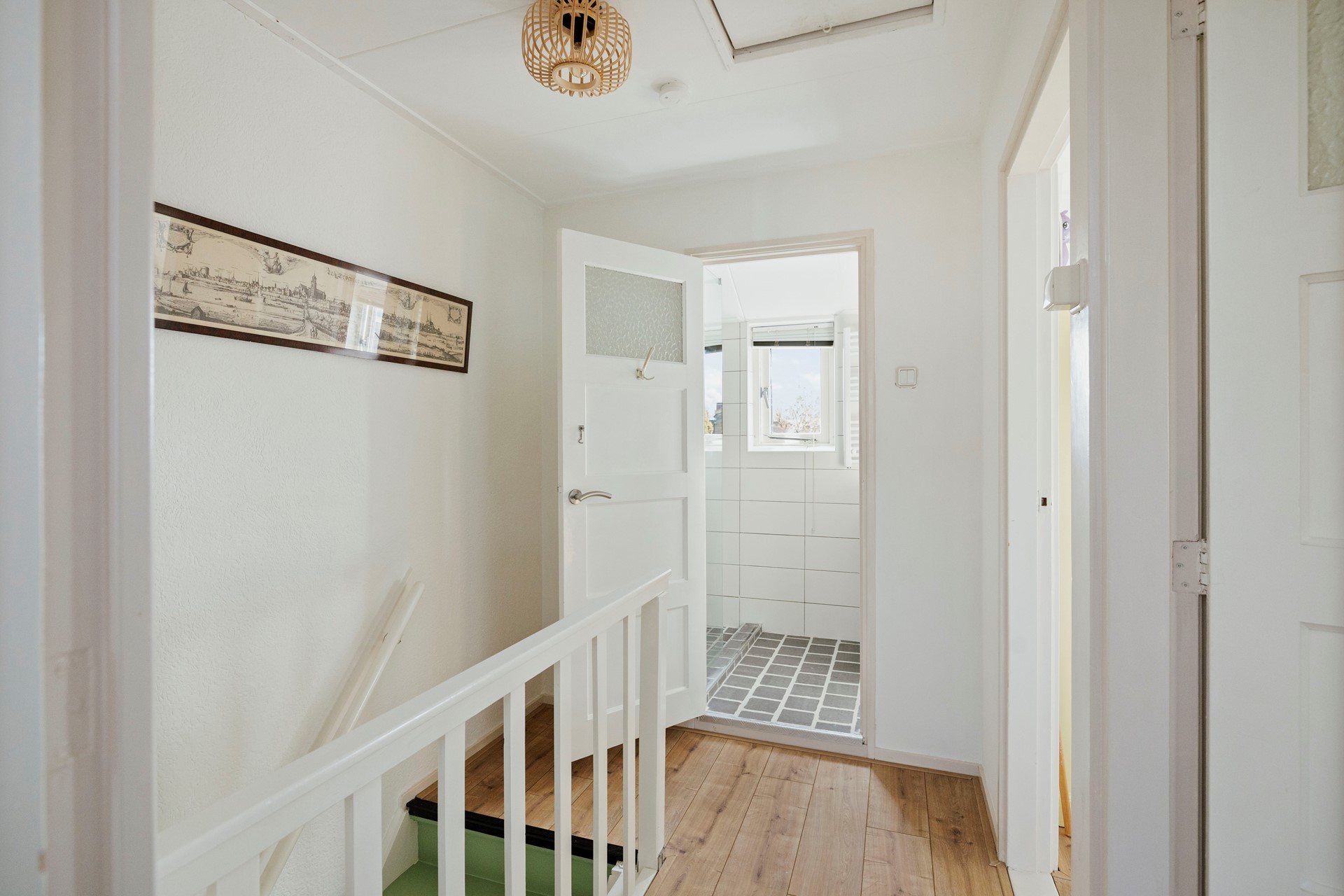 Via de ruime overloop heb je toegang tot de badkamer met inloopdouche en wastafelmeubel, en tot drie fijne en lichte slaapkamers. Twee slaapkamers liggen aan de voorkant, waaronder de ouderslaapkamer.