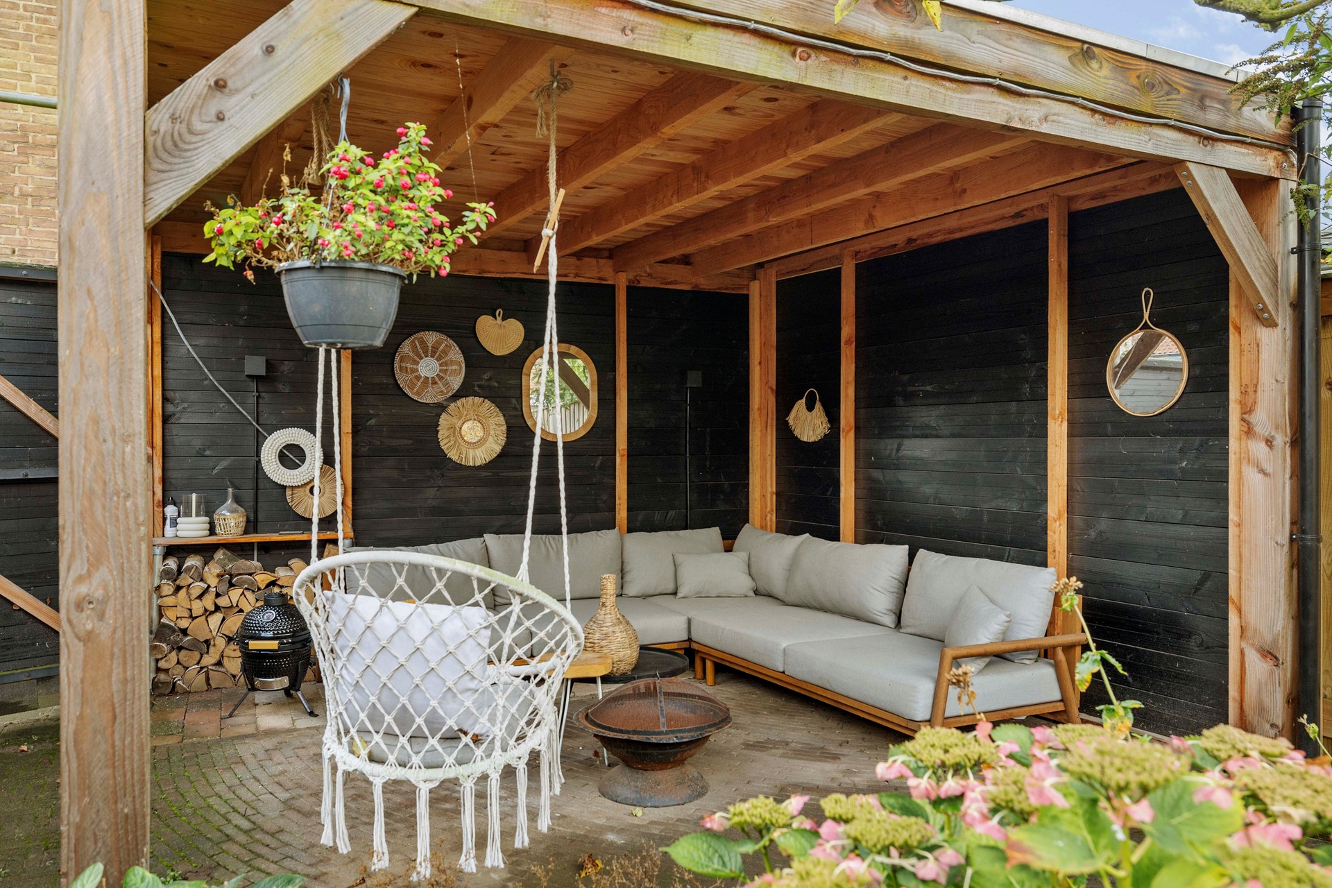 Een mooie verrassing van deze woning is de diepe, mooi aangelegde achtertuin op het zuidwesten. Er is volop ruimte voor een loungeplek en eettafel. Zo geniet je hier de hele dag van de zon. Wil je liever wat schaduw of is het weer wat minder? Onder de overkapping zit je altijd comfortabel, zodat jij zoveel als je wilt van je tuin kunt genieten.