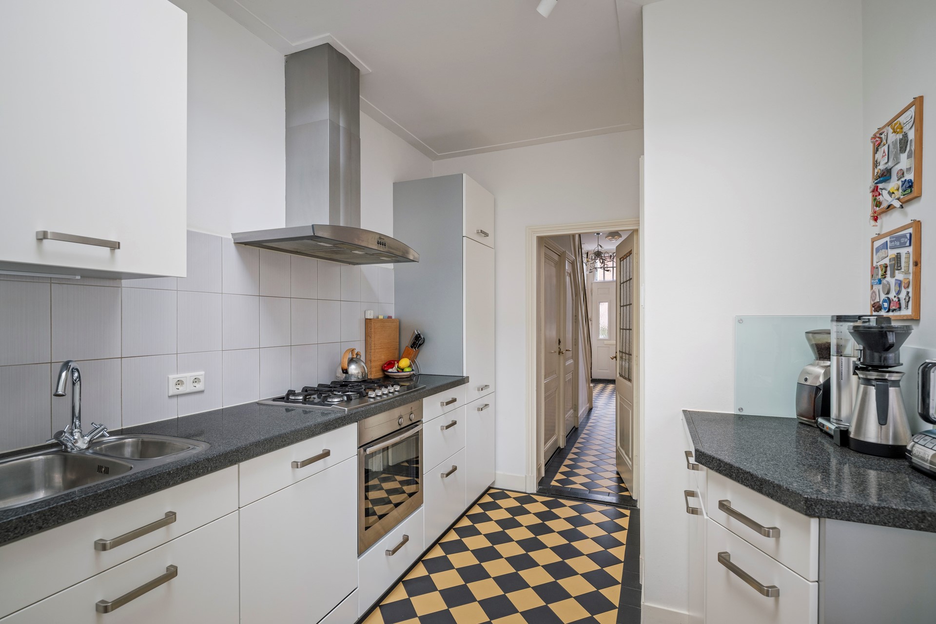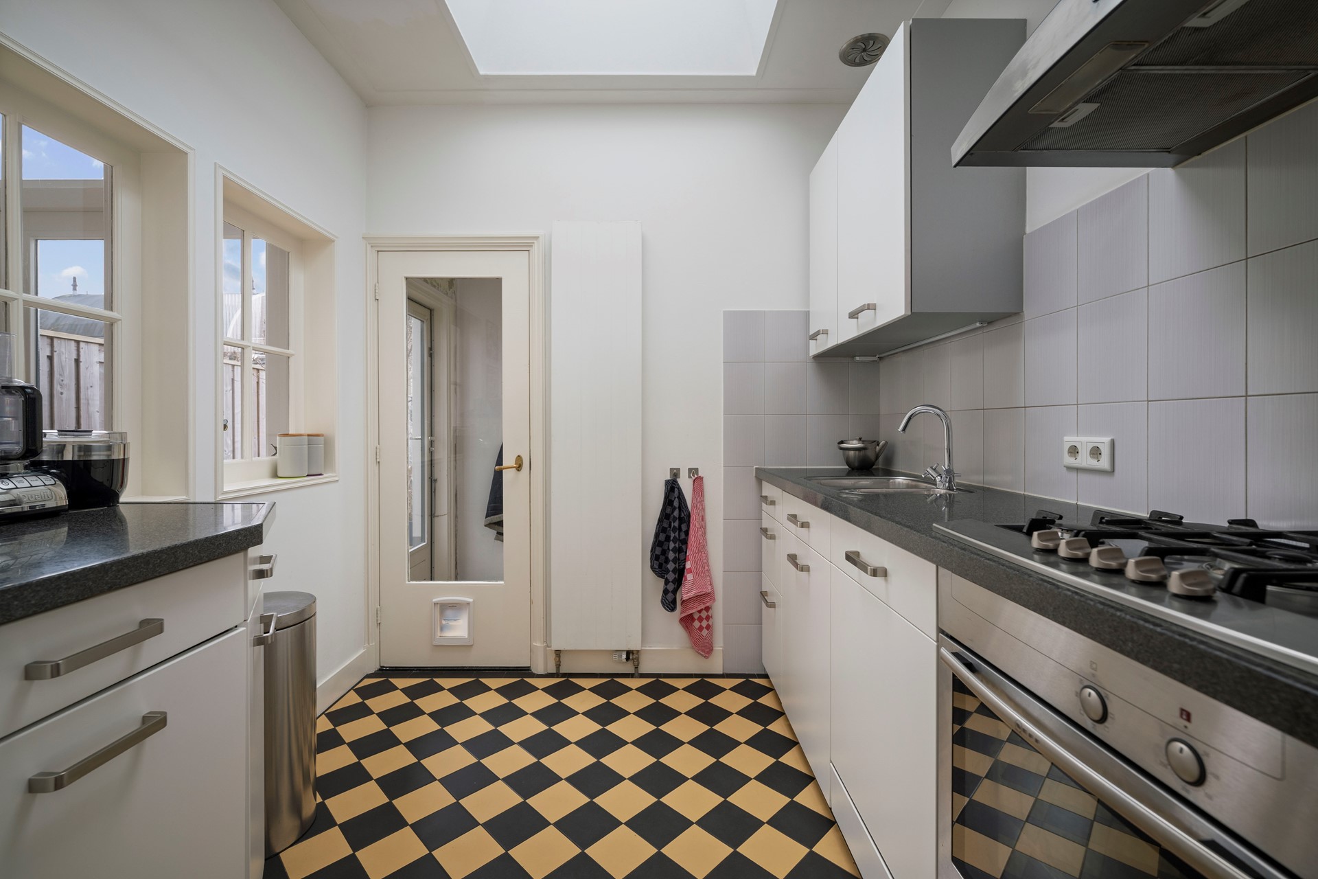 Zoals kenmerkend is voor de bouwperiode, vind je in dit herenhuis een dichte keuken. Hier is alles aanwezig om lekker voor je gasten te koken, van een fornuis en een oven tot een koelkast en een vaatwasser. De keuken heeft een lichtkoepel en ramen richting de serre, en is dus ook nog eens heerlijk licht.