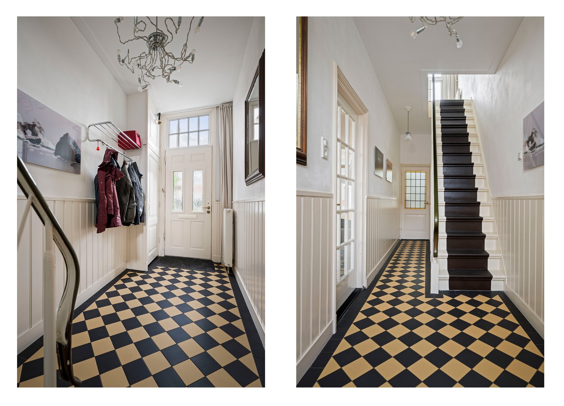 In de entree blijkt direct het karakter van deze woning als je over de karakteristieke tegelvloer binnenkomt. In de hal vind je de meterkast, trapopgang naar de eerste verdieping, het toilet en toegang tot een ruime kelder die nog veel extra opslagruimte biedt. Vanuit de hal bereik je zowel de woonkamer als de keuken.