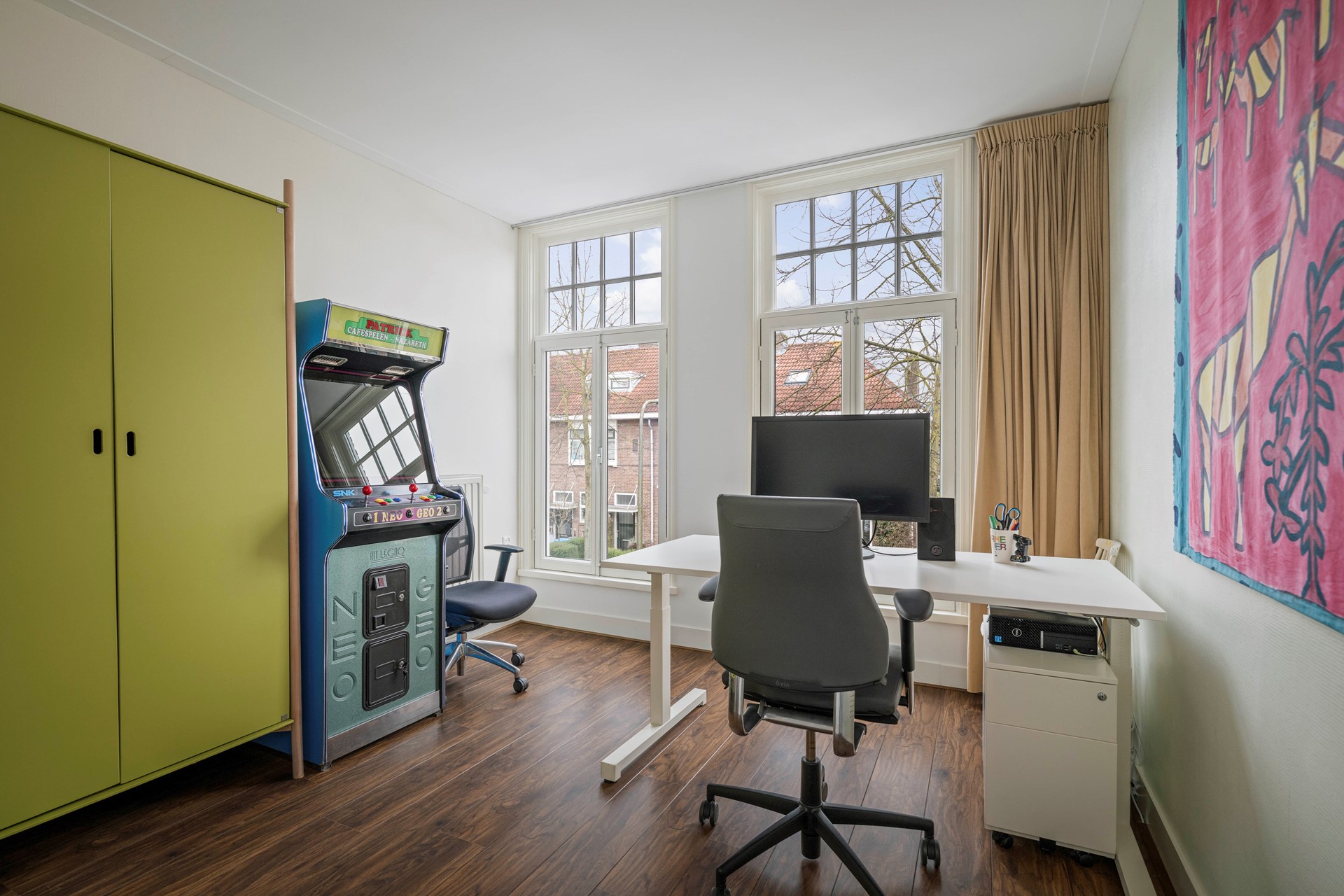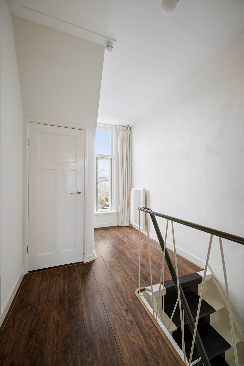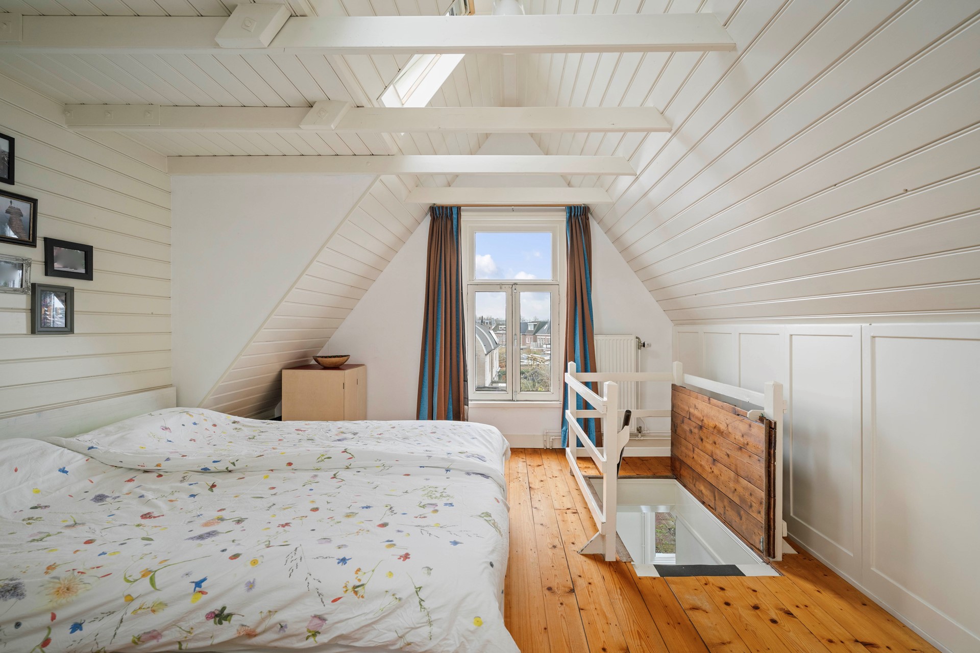 De tweede verdieping verrast met een mooie grenen vloer, veel licht door de dakramen, en extra ruimte dankzij de dakopbouw en opgetrokken gevel aan de achterkant. Zo biedt de ruimte nu genoeg plek voor twee extra, royale slaapkamers, die je ook goed kunt gebruiken als thuiswerkplek of hobbyruimte.