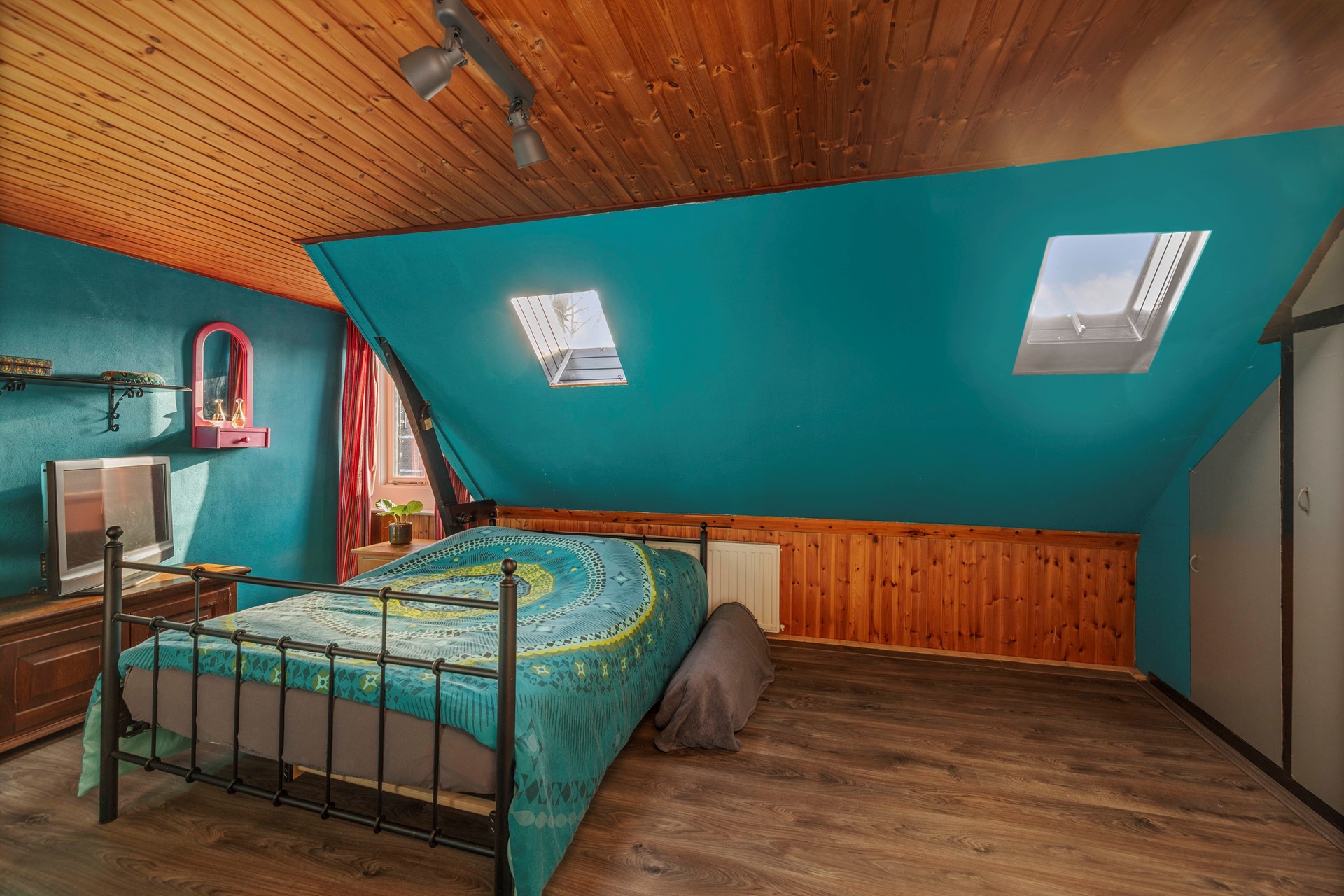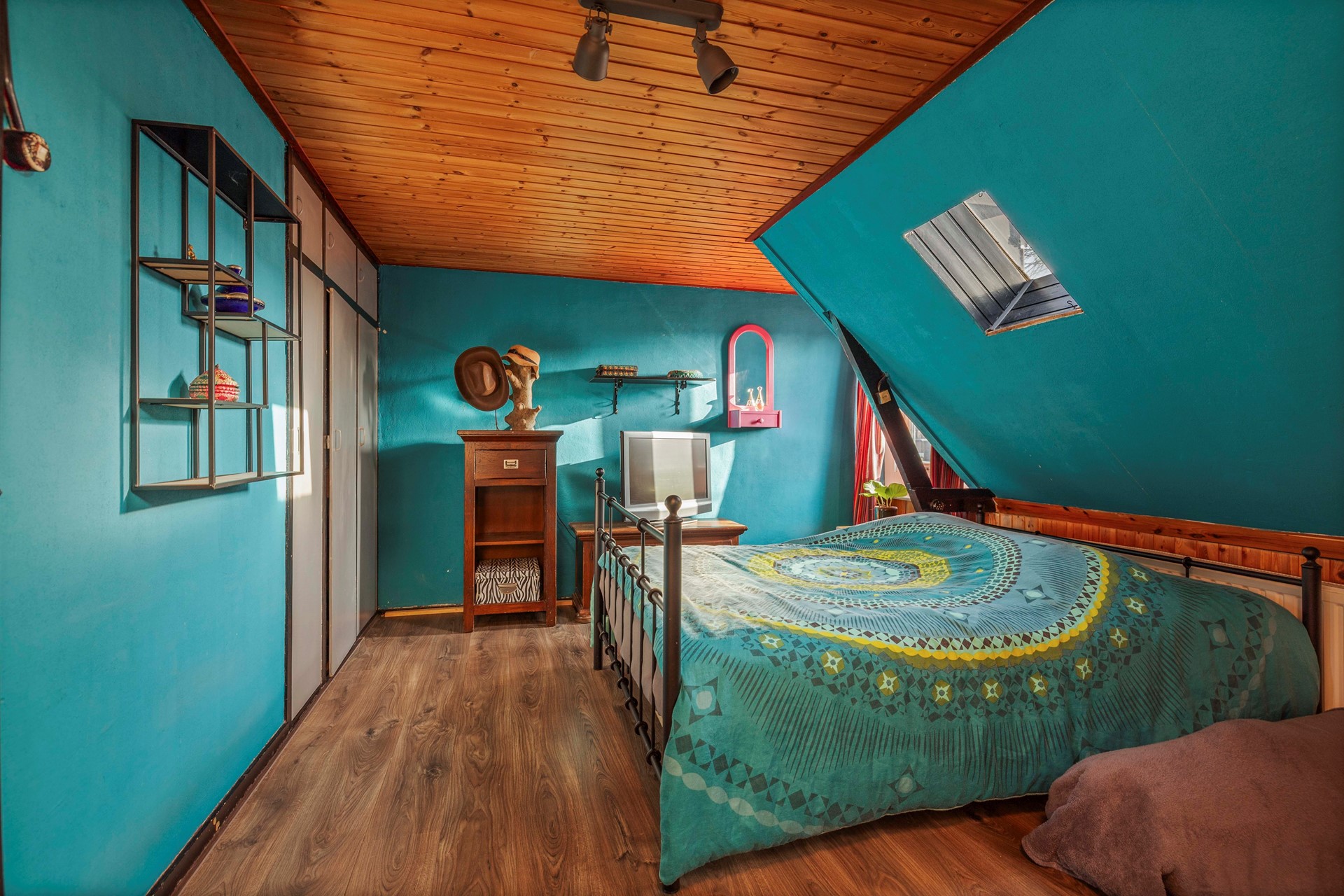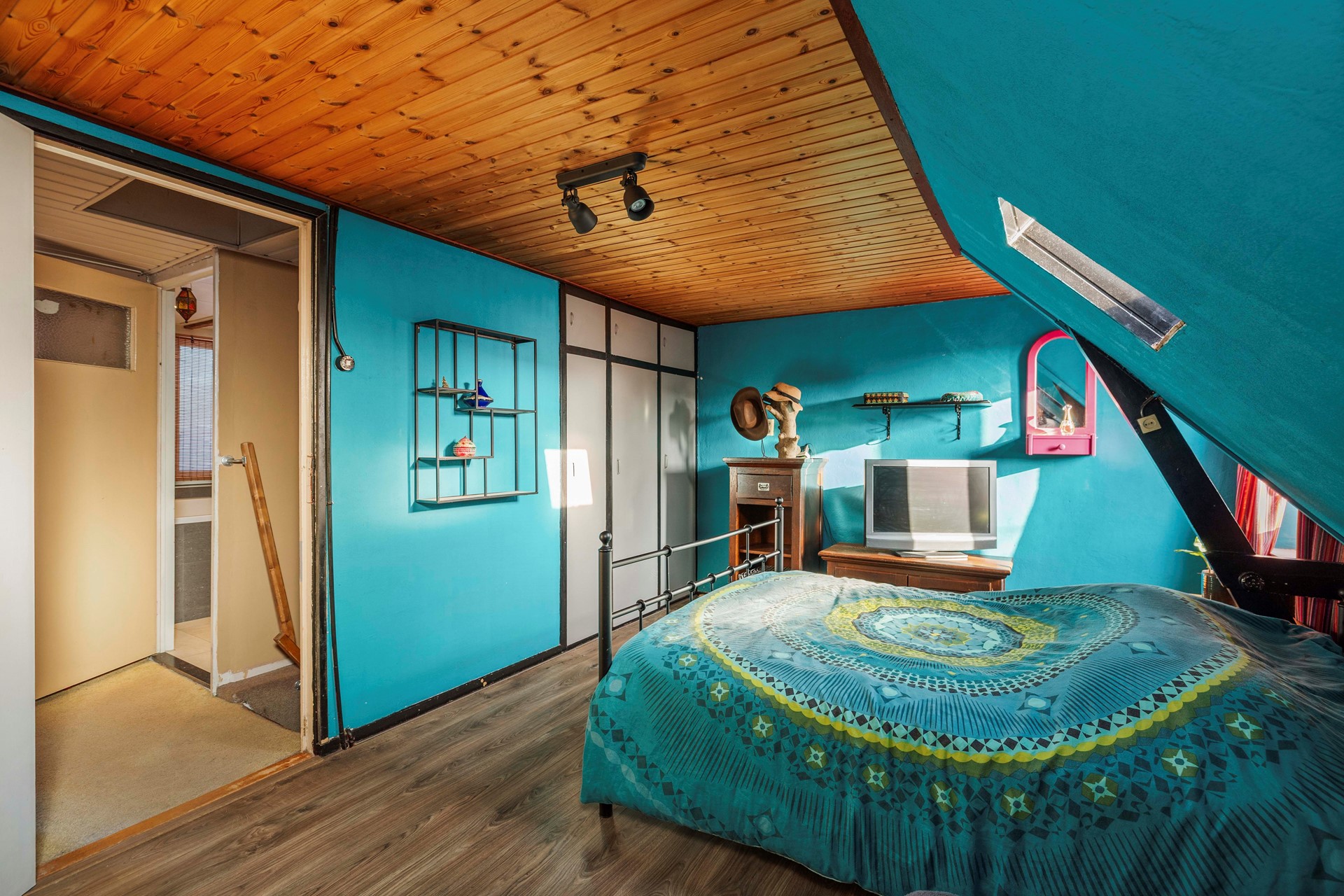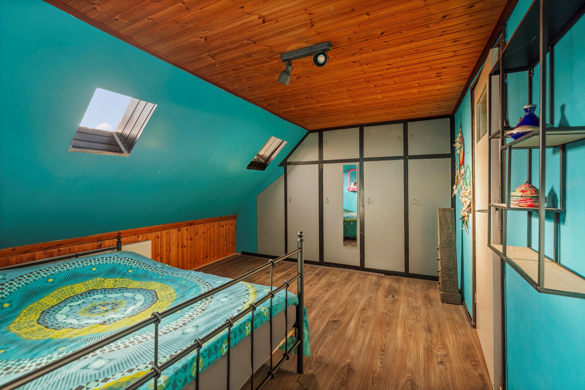 Op de overloop heb je via een losse trap toegang tot de praktische bergzolder.