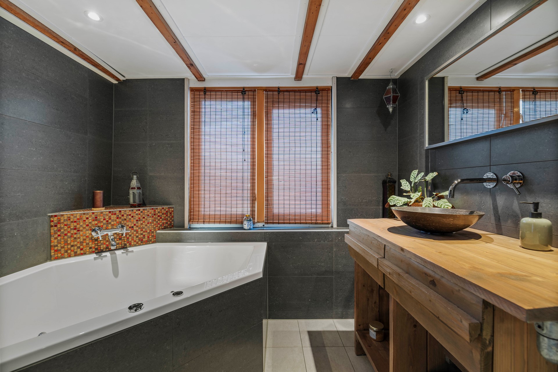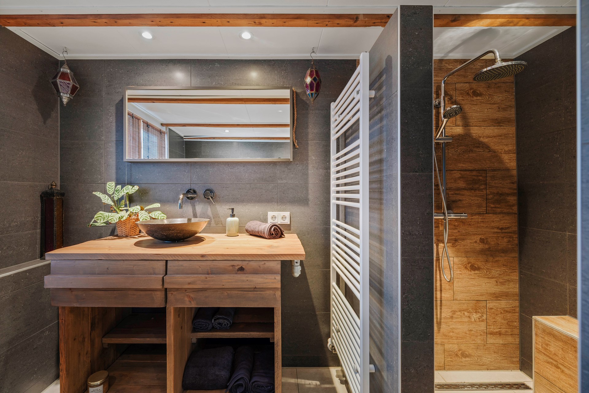 De badkamer is in 2018 vernieuwd en van alle gemakken voorzien om de dag ontspannen te beginnen of eindigen. Je vindt hier een tweede toilet, modern wastafelmeubel, een grote en stijlvolle inloopdouche, en de grote verrassing van de woning: een luxe bubbelbad.