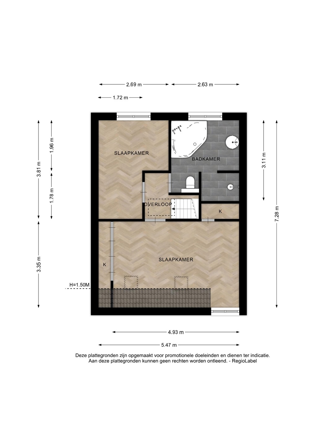 | Aantal badkamers | 1 (en 1 apart toilet) |