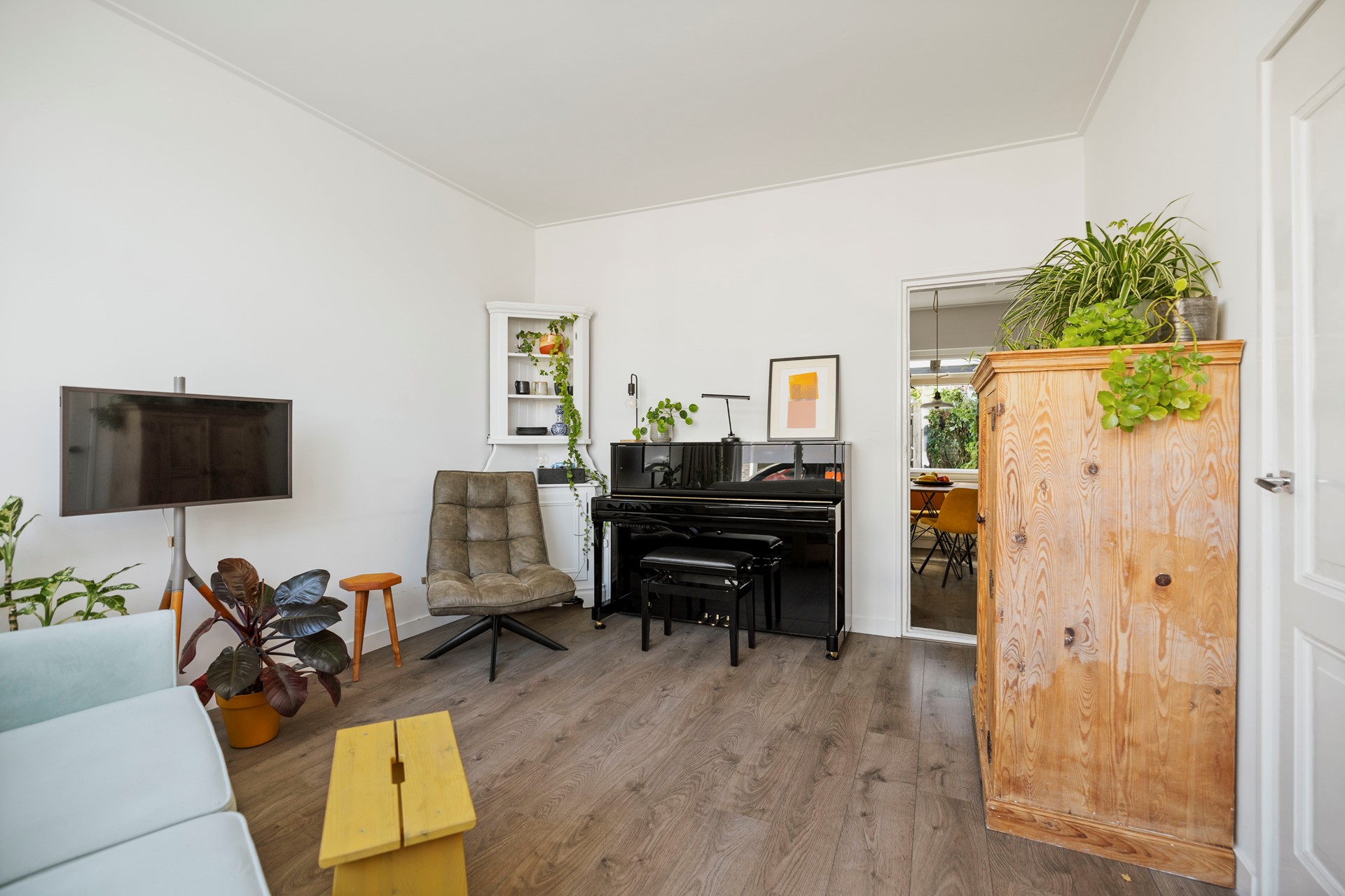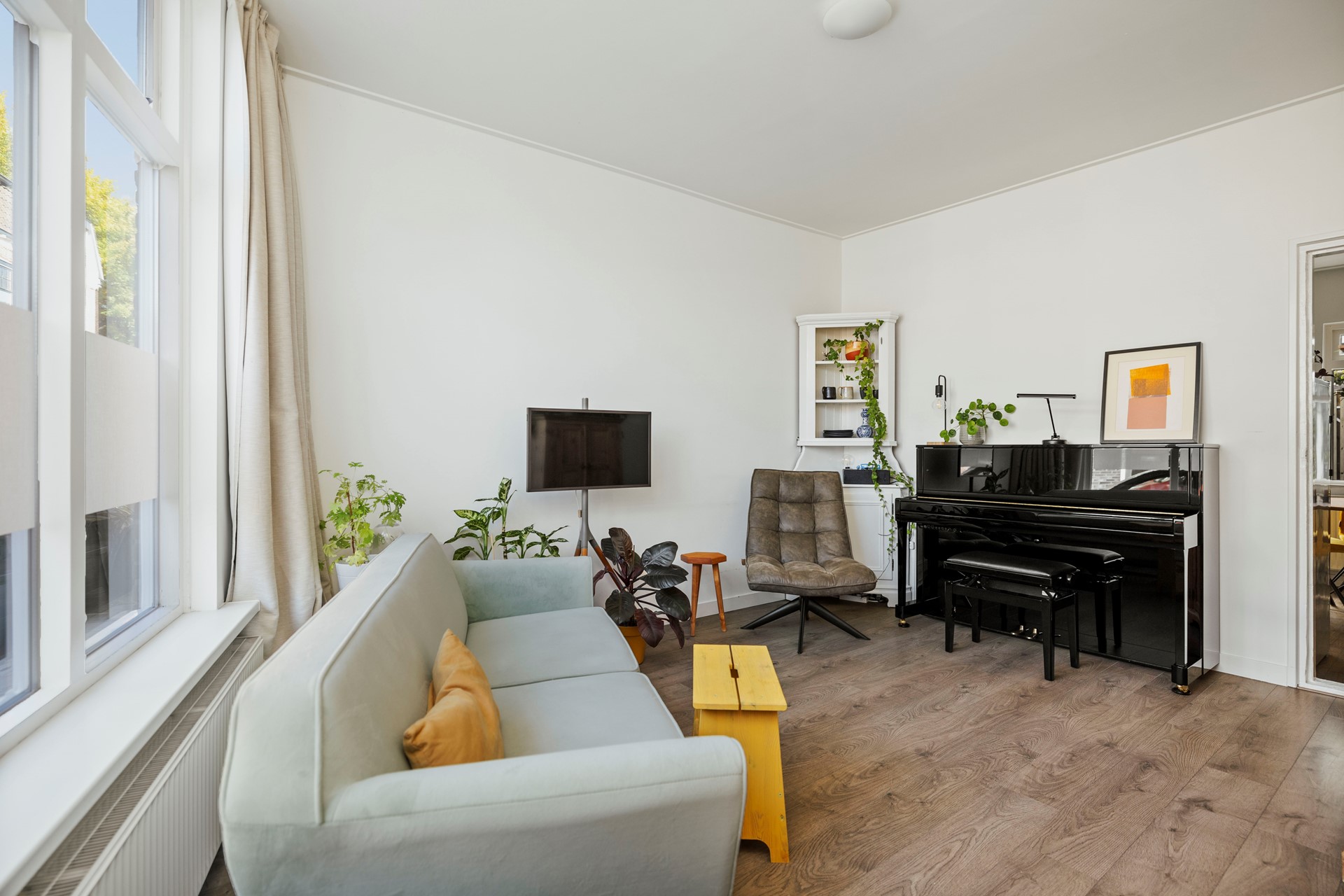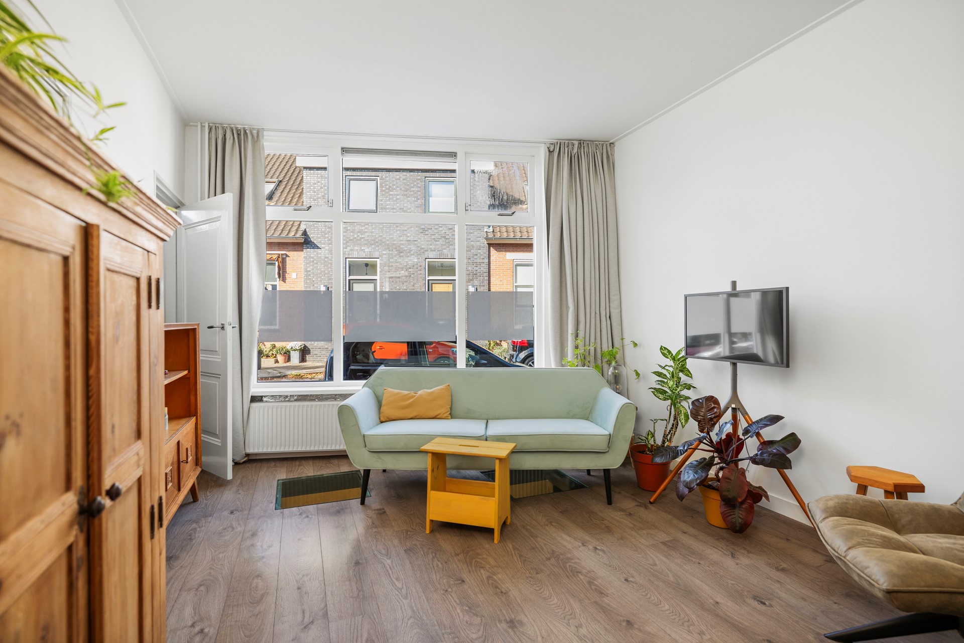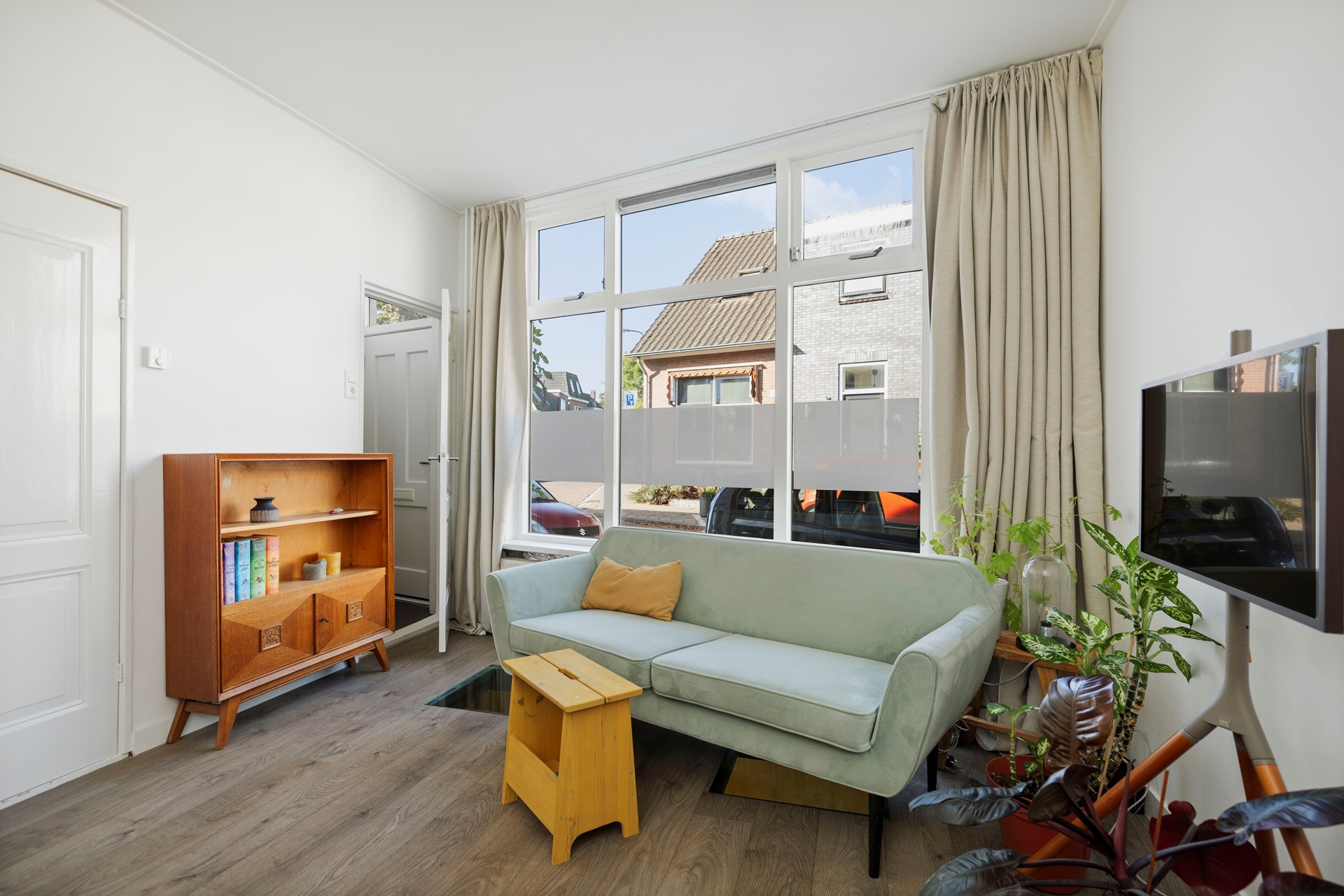 Bij aankomst word je meteen sfeervol ontvangen door een charmante woning waar een blauwe regen de voorgevel siert. Je komt de woning binnen in een entree met garderobe, meterkast en de trap naar boven. Vanuit de hal betreed je de woonkamer. De woonkamer is licht, heeft een charmante uitstraling en is voorzien van een mooie laminaatvloer. In de woonkamer is een trapkast aanwezig voor extra opslagruimte.