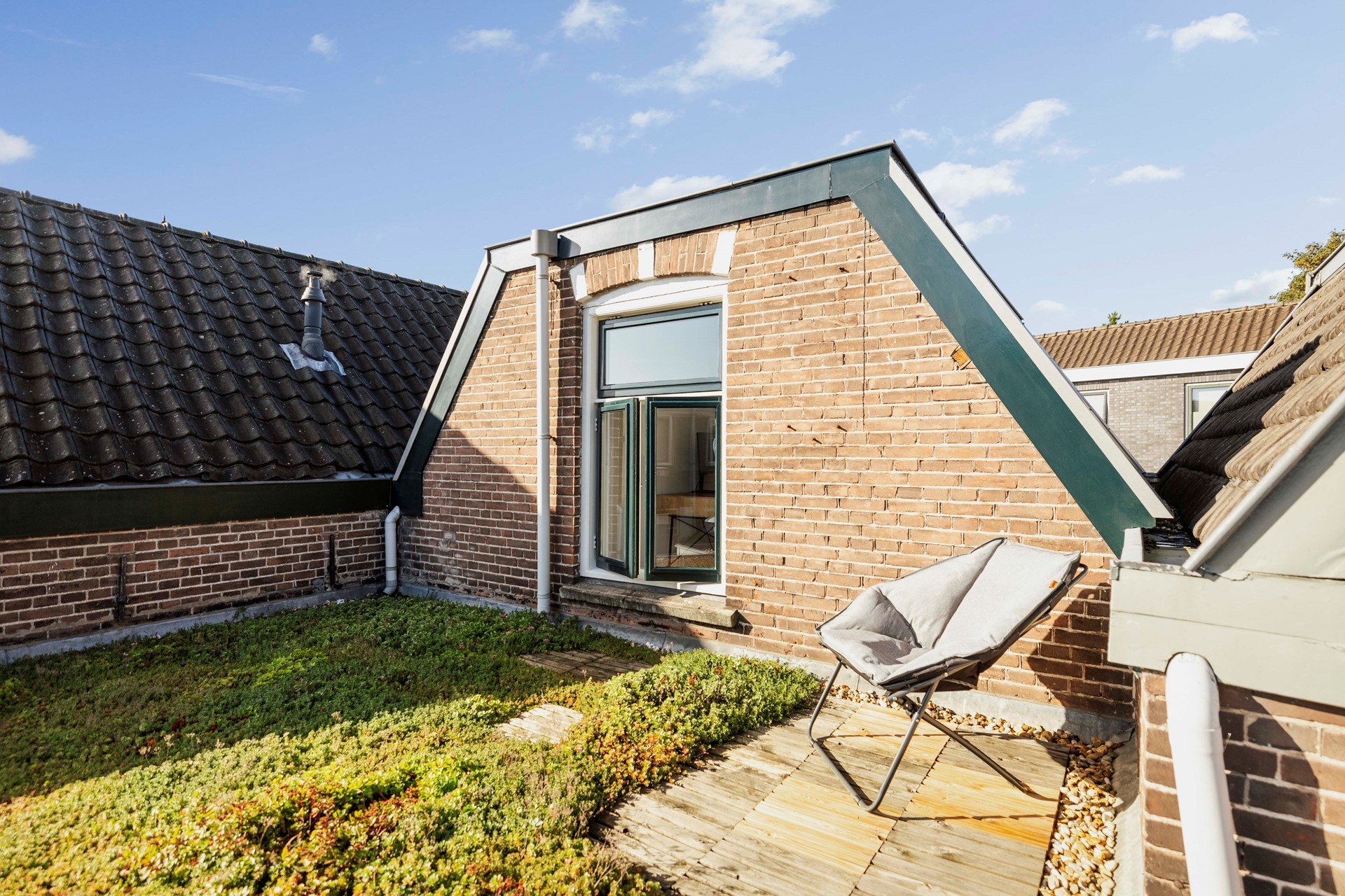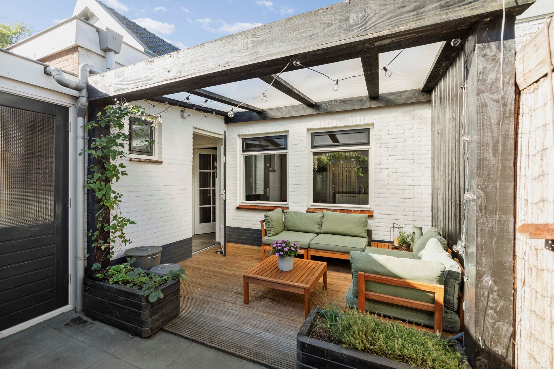 Een mooie verrassing bij deze woning is de heerlijke, onderhoudsvriendelijke stadstuin. Hier vind je veel rust en privacy en geniet je na een drukke dag nog lekker van het mooie weer. In de tuin is een veranda aanwezig, waar je op de vlonderplanken een fijn loungeset neerzet. Strijk hier neer met een goed boek of nodig je vrienden uit om te toosten op je nieuwe woonplek. De tuin beschikt over een achterom en een berging voorzien van elektra.