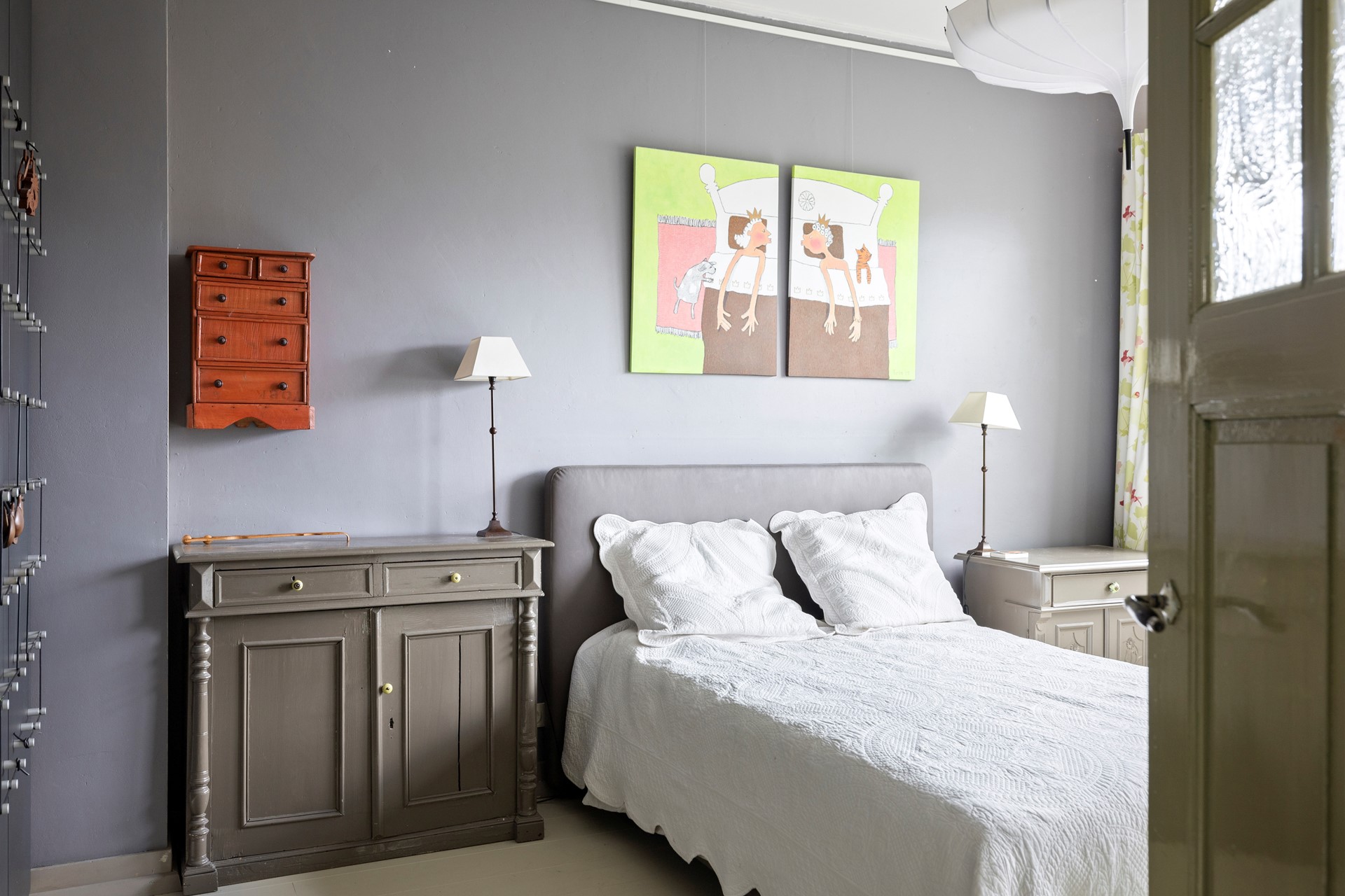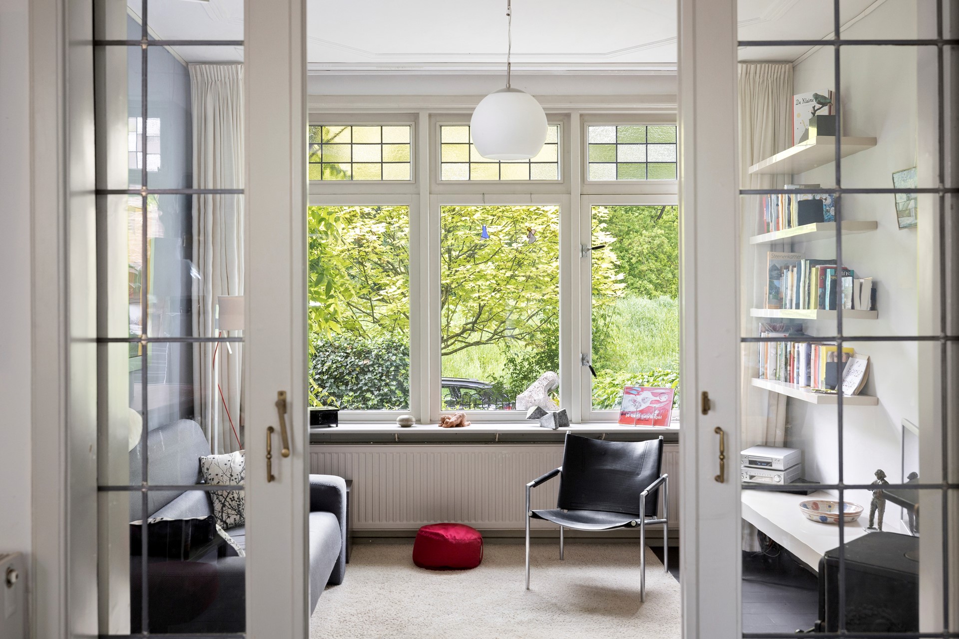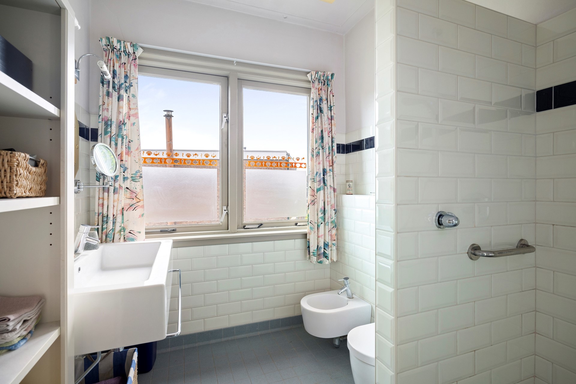 Net als op de begane grond ademt de eerste verdieping het karakter uit de jaren ’20, mede door de paneeldeuren en mooie houten vloerdelen die ook hier aanwezig zijn. Op deze ver-dieping vind je twee slaapkamers, waarvan de ouderslaapkamer over de hele breedte van de woning ligt. Als je ’s ochtends de gordijnen opendoet, begint de dag goed met uitzicht op het groene Worpplantsoen. De kamer heeft een eigen balkon.