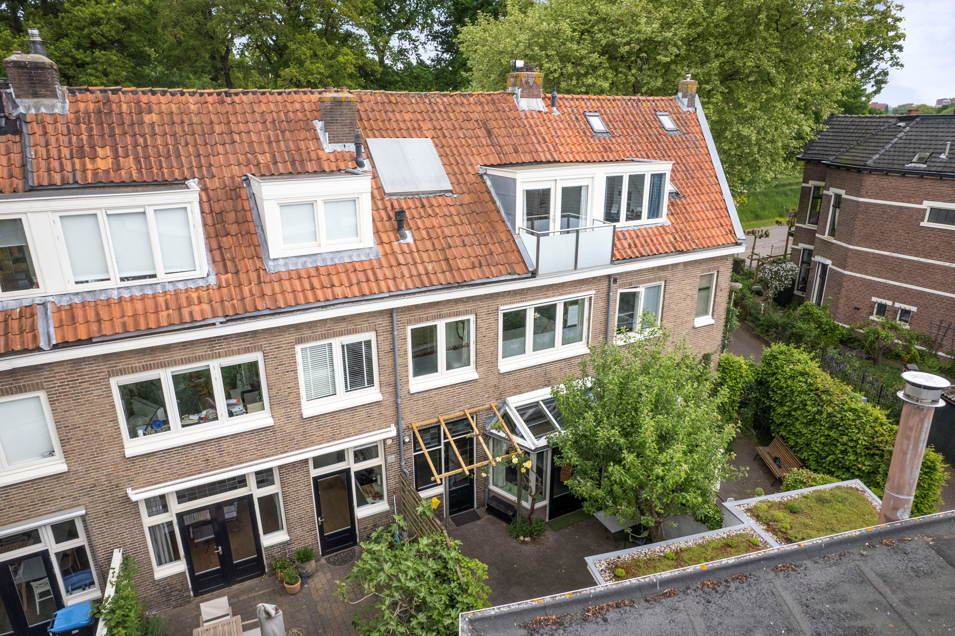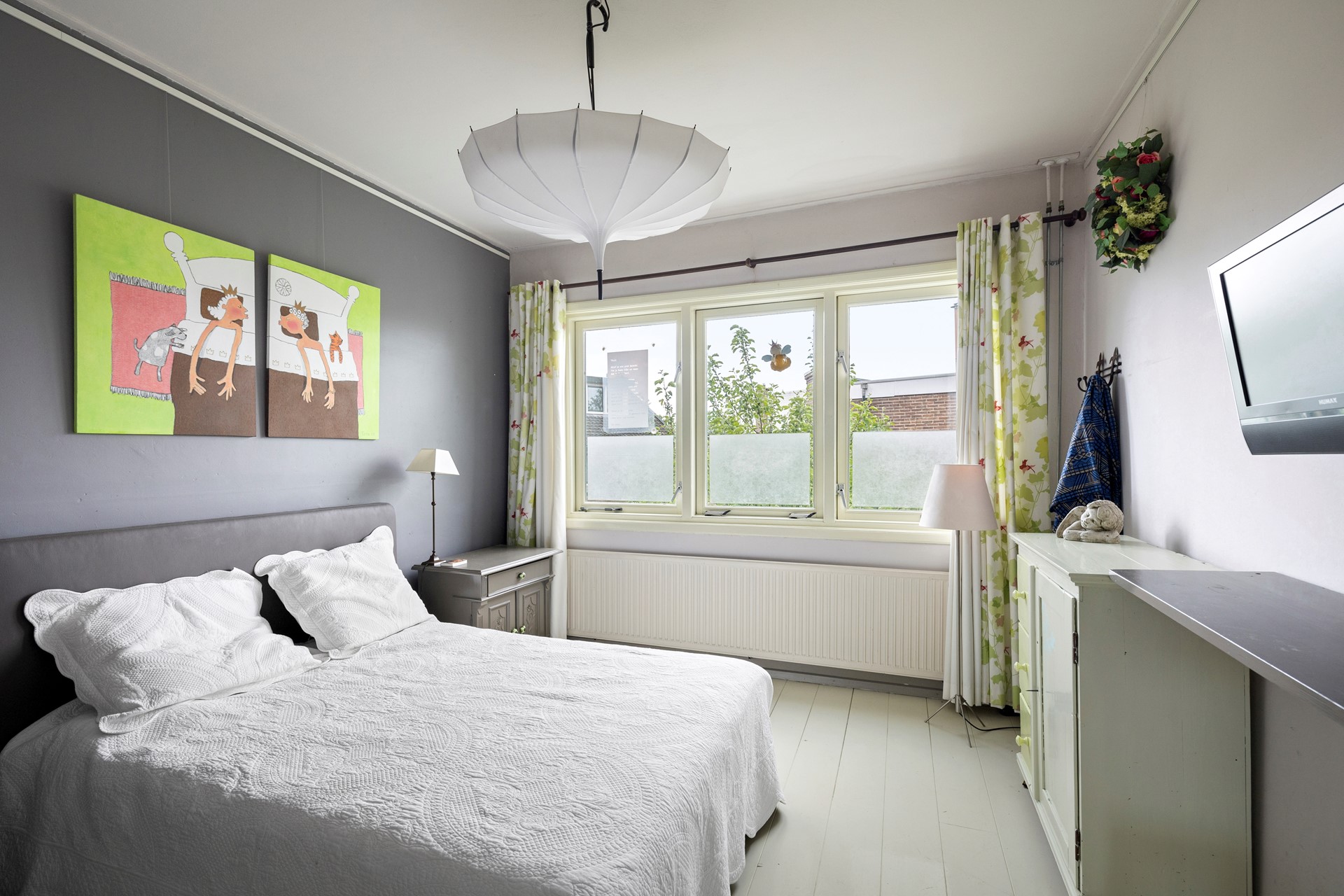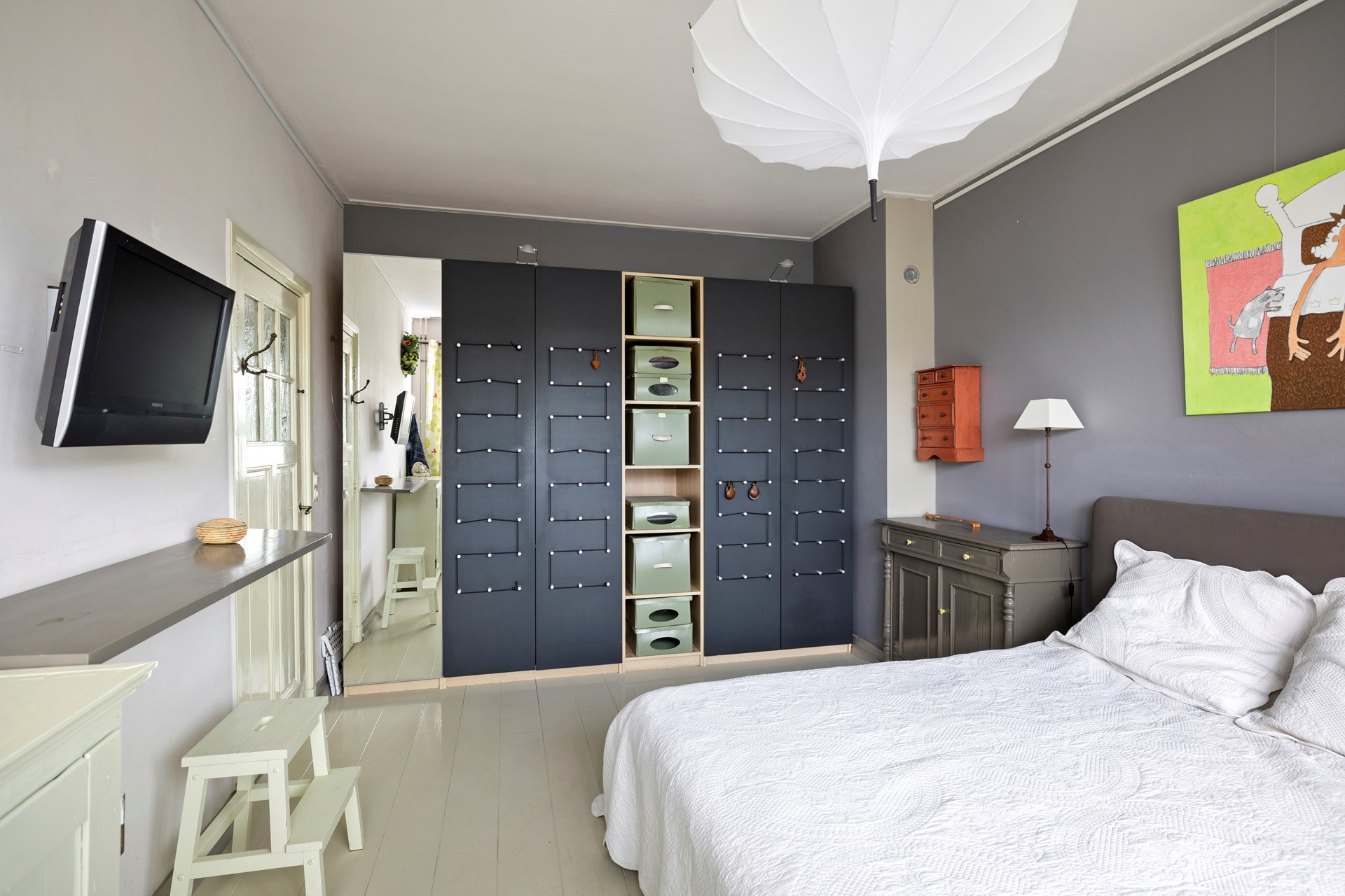 Net als op de begane grond ademt de eerste verdieping het karakter uit de jaren ’20, mede door de paneeldeuren en mooie houten vloerdelen die ook hier aanwezig zijn. Op deze ver-dieping vind je twee slaapkamers, waarvan de ouderslaapkamer over de hele breedte van de woning ligt. Als je ’s ochtends de gordijnen opendoet, begint de dag goed met uitzicht op het groene Worpplantsoen. De kamer heeft een eigen balkon.