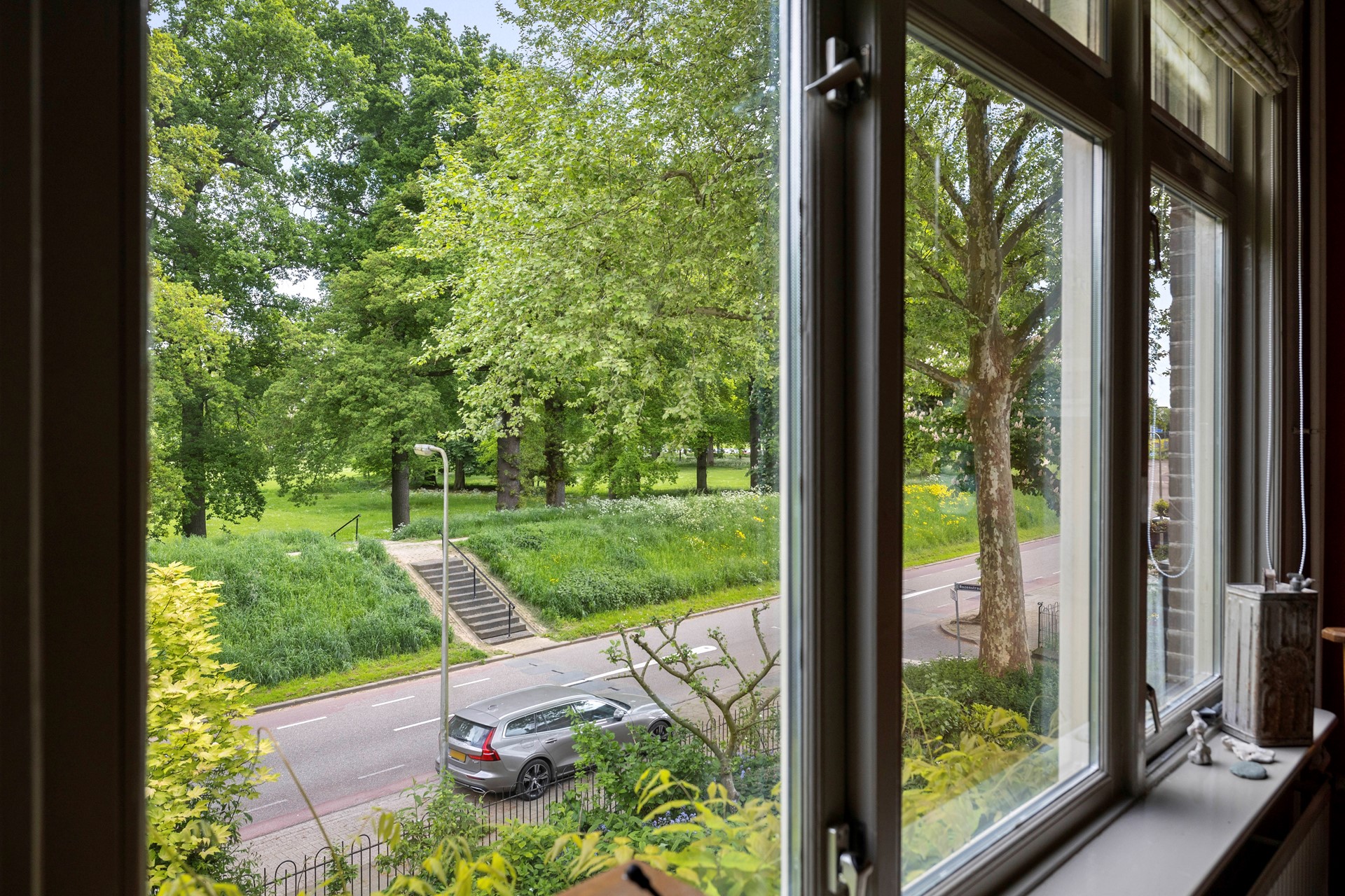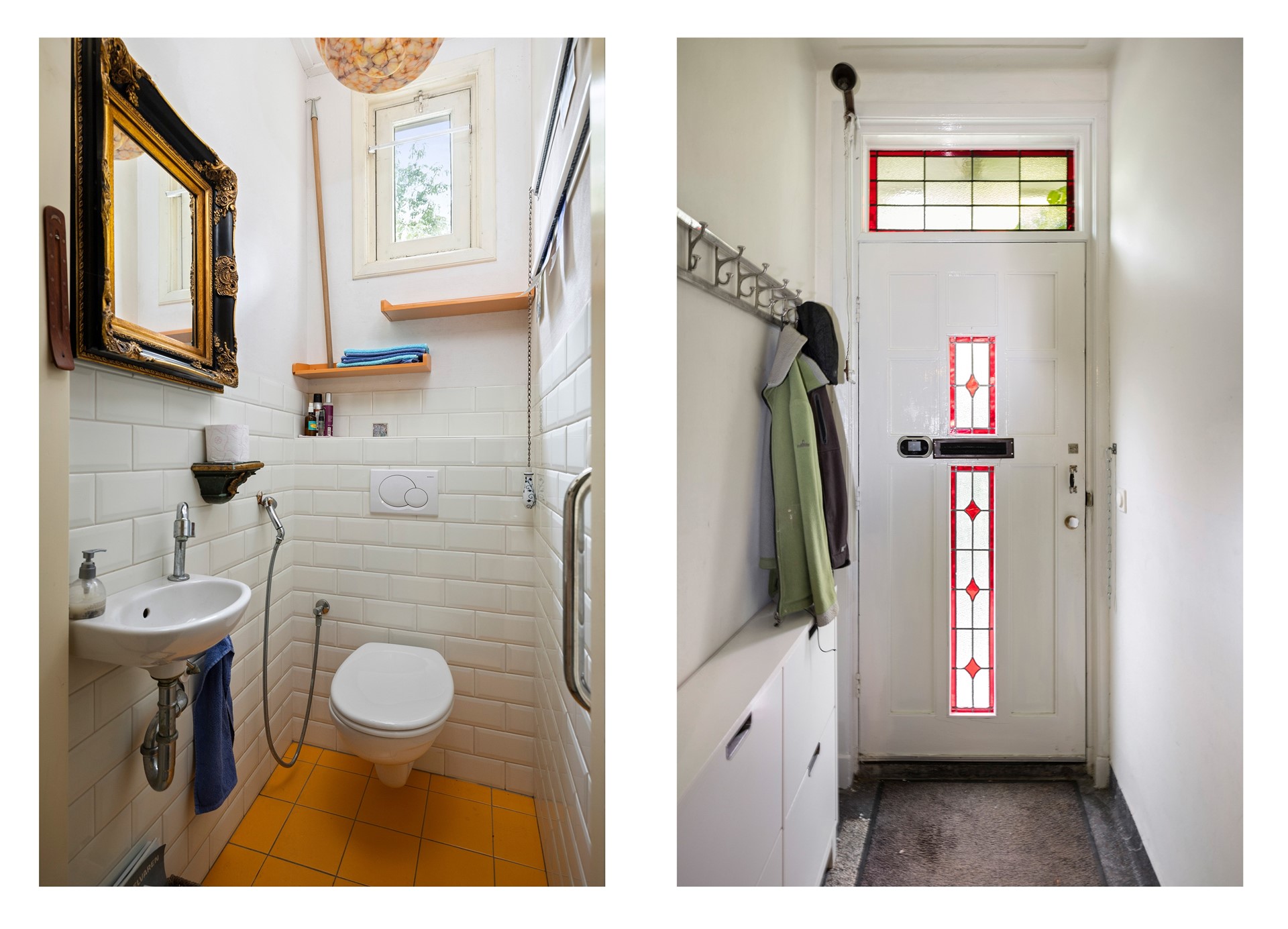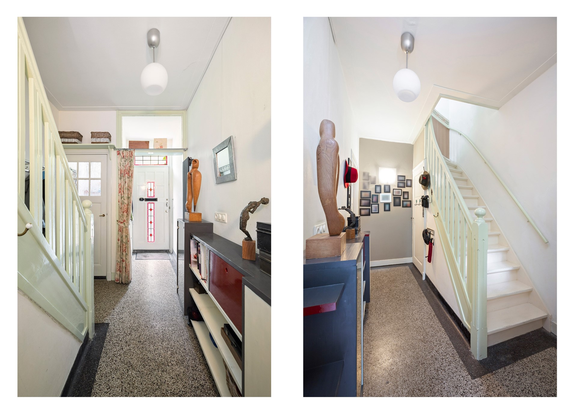 Bij deze zeer charmante woning word je bij de voordeur in stijl ontvangen door een sierlijke blauwe regen en glas-in-loodramen. Je betreedt de woning via een mooie terrazzovloer. Door de hogere ligging heb je vanuit de hele woning uitzicht over het Worpplantsoen en de IJssel. In de entree vind je de trap naar de eerste verdieping, het toilet, en de toegang tot de ruimte met de meterkast en de kelder.