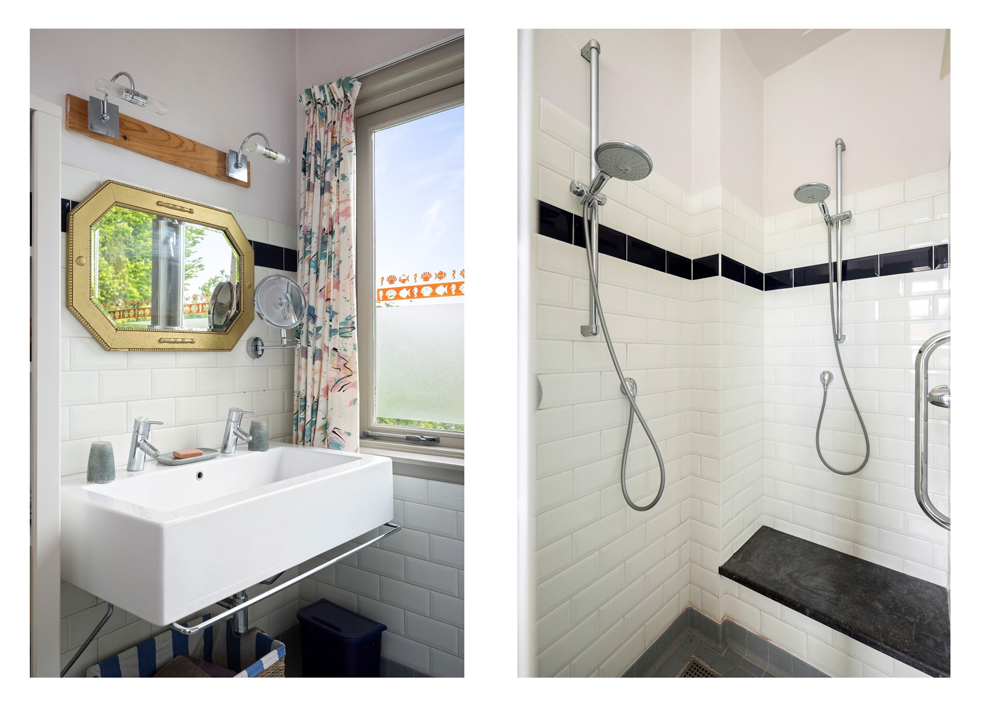 De tweede slaapkamer is gelegen aan de achterkant van de woning en ook deze is heerlijk ruim. Behalve tot de twee slaapkamers, heb je vanaf de overloop ook toegang tot de badka-mer. De badkamer is voorzien van een dubbel wastafelmeubel, toilet, bidet en een zeer ruime inloopdouche met twee douches.