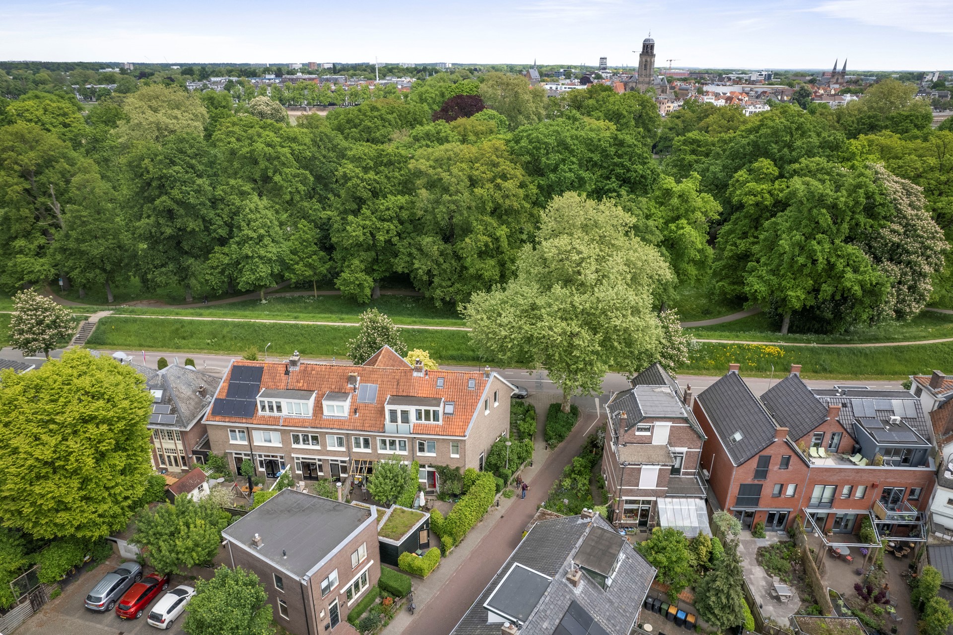 Niet alleen de woning zelf heeft charme, dat geldt ook voor de omgeving. De woning staat in de karakteristieke wijk de Hoven, grenzend aan het groene Worpplantsoen en de IJssel. Zodra je de kronkelende rivier oversteekt, sta je midden in Hanzestad Deventer. Alle voorzienin-gen, waaronder supermarkten, scholen en het station, liggen dus op fietsafstand.