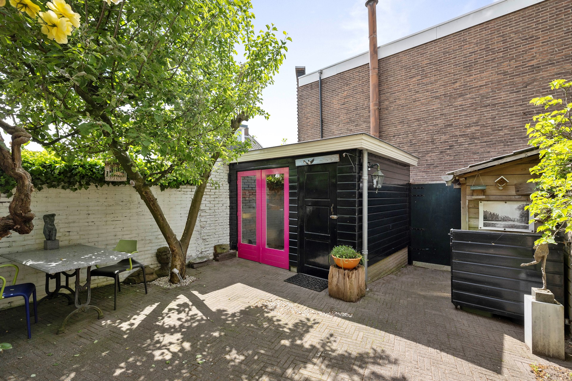 In de achtertuin staat een ruime schuur met dubbele deuren en een sedumdak. De tuin heeft een achterom. Ook beschikt de woning over een groene voortuin op het noordoosten.